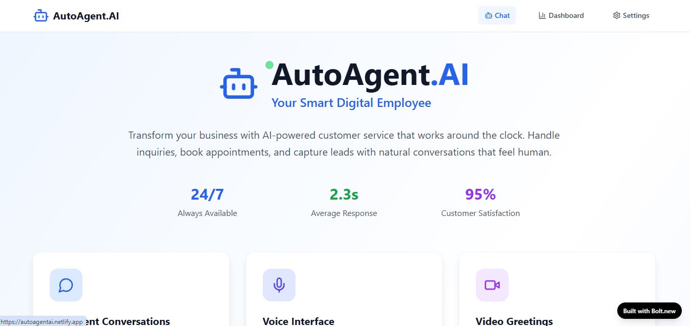 That idea became AutoAgent.AI — a smart assistant built entirely without traditional code using Bolt.new, powered by state-of-the-art AI tools.
