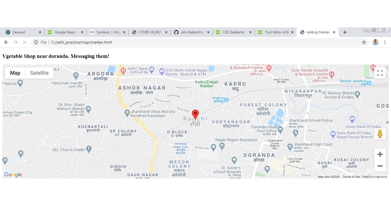 What it does This project helps front-line workers to totally engage in supplying medications to the nearby hospitals. A database is maintained manually by the by hospital staff and when medications decrease they use the chatbot to share the querry and get relevalent answers. They can also see the map present in another webpage according to the location.