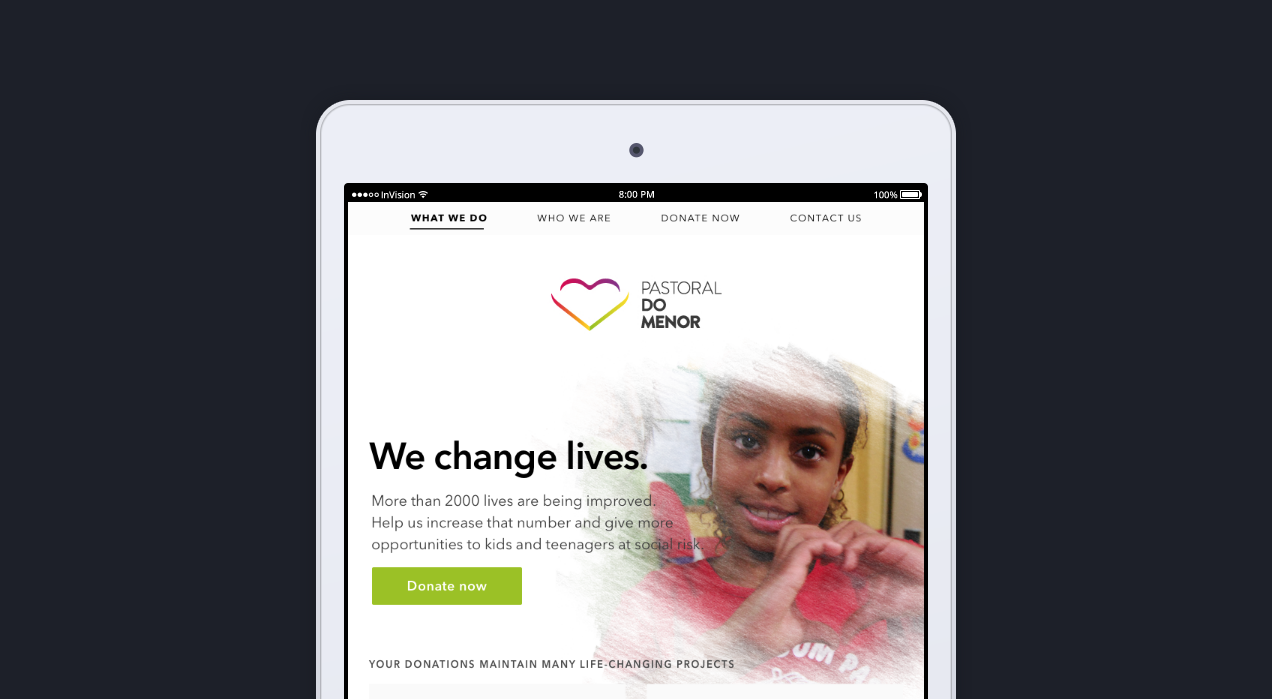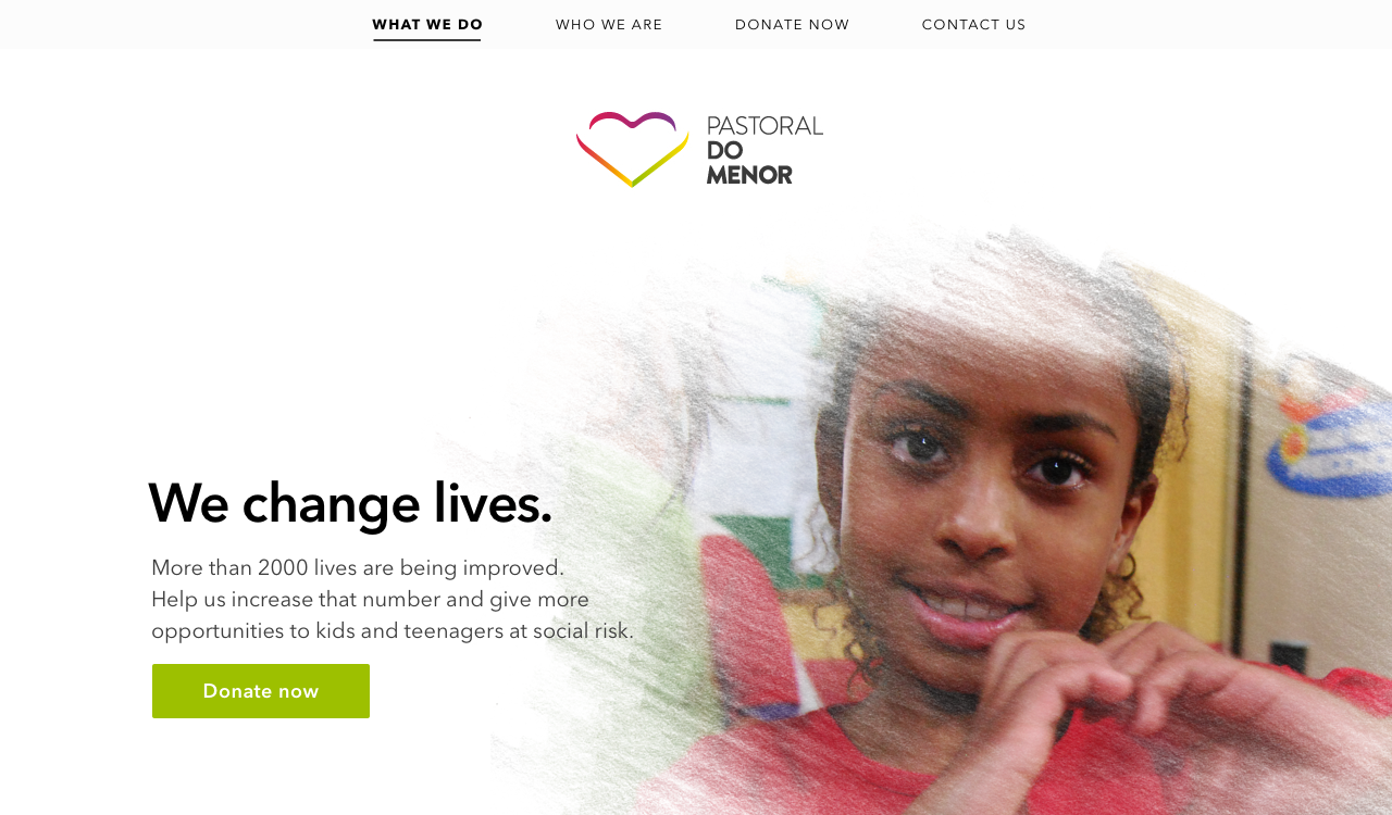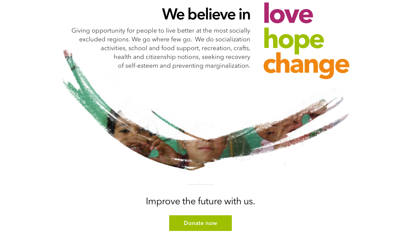 They want (and need) to receive more donations, it was a main point in our conversations. They also really want to show their projects and the kids they attend on the website, so I used real pictures from the kids, that I took when I was there. The kids do a heart with their hands all the time (that’s one of the reasons the new logo has a heart) so I also noticed that is one important thing to keep showing, to maintain their branding consistent. They need to show their work is important and change so many lives in a social risk situation.