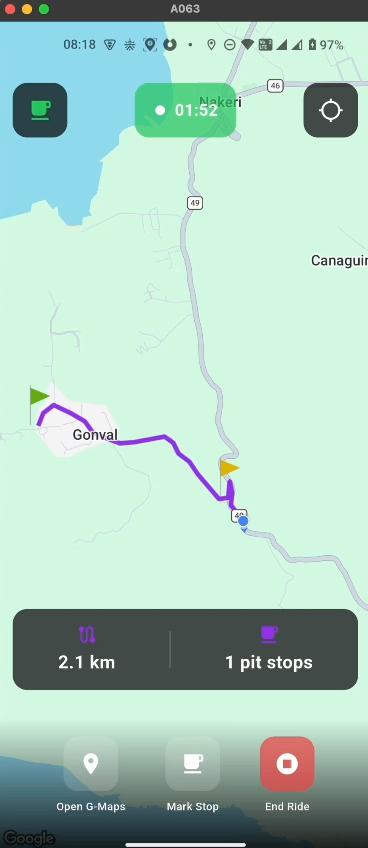 Ongoing ride.User has marked a stop( yellow flag)