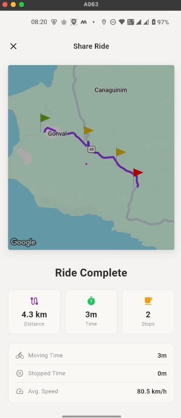 - 📊 Ride Statistics - Distance, duration, speed, tracked