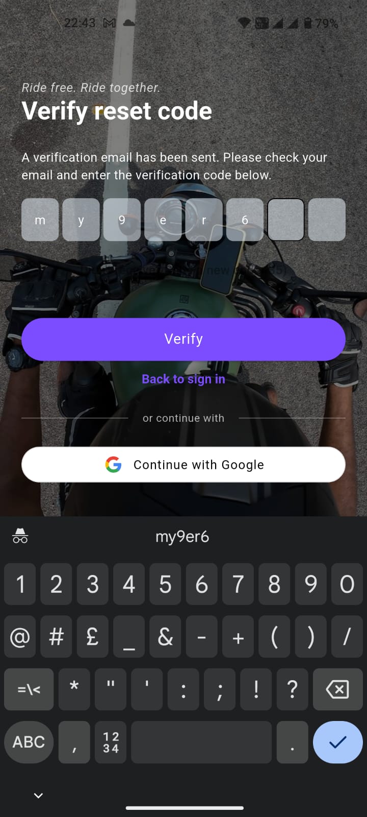 code verification page.