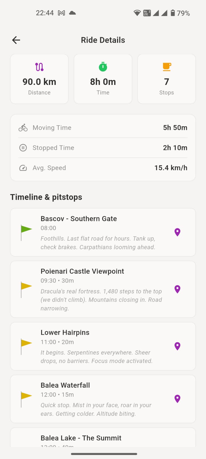 Ride summary page