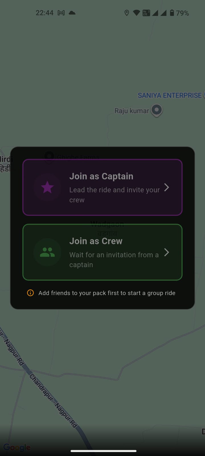 Group ride in progress.We can navigate to anyone's live location.