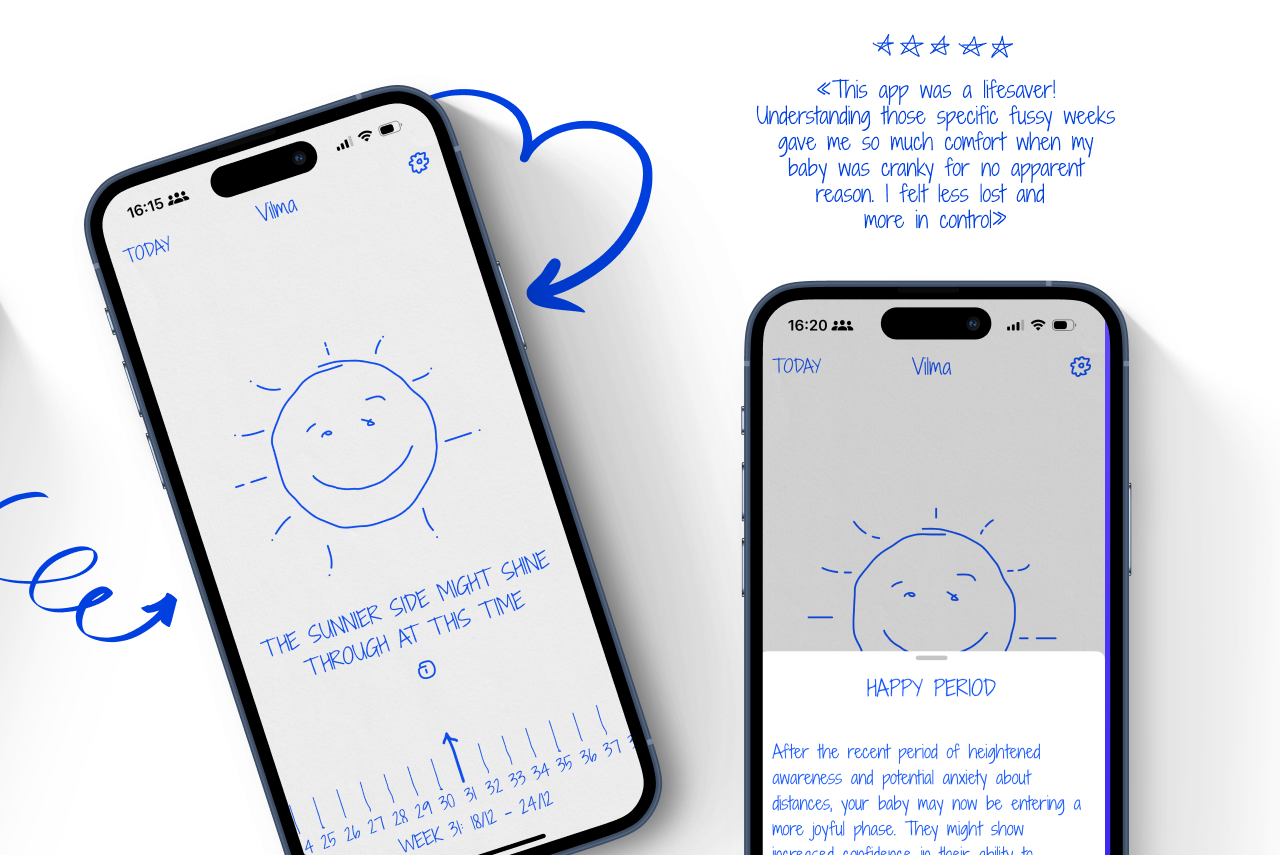 «This app was a lifesaver! Understanding those specific fussy weeks gave me so much comfort when my baby was cranky for no apparent reason.»