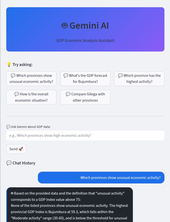 My inspiration was to build a tool that could make this invisible economy visible. I wanted to use the power of AI to create a solution that could provide real-time insights into the economic health of my country, not just based on traditional metrics, but on the digital footprints of everyday life. This project is my way of contributing to a more data-driven and prosperous future for Burundi.