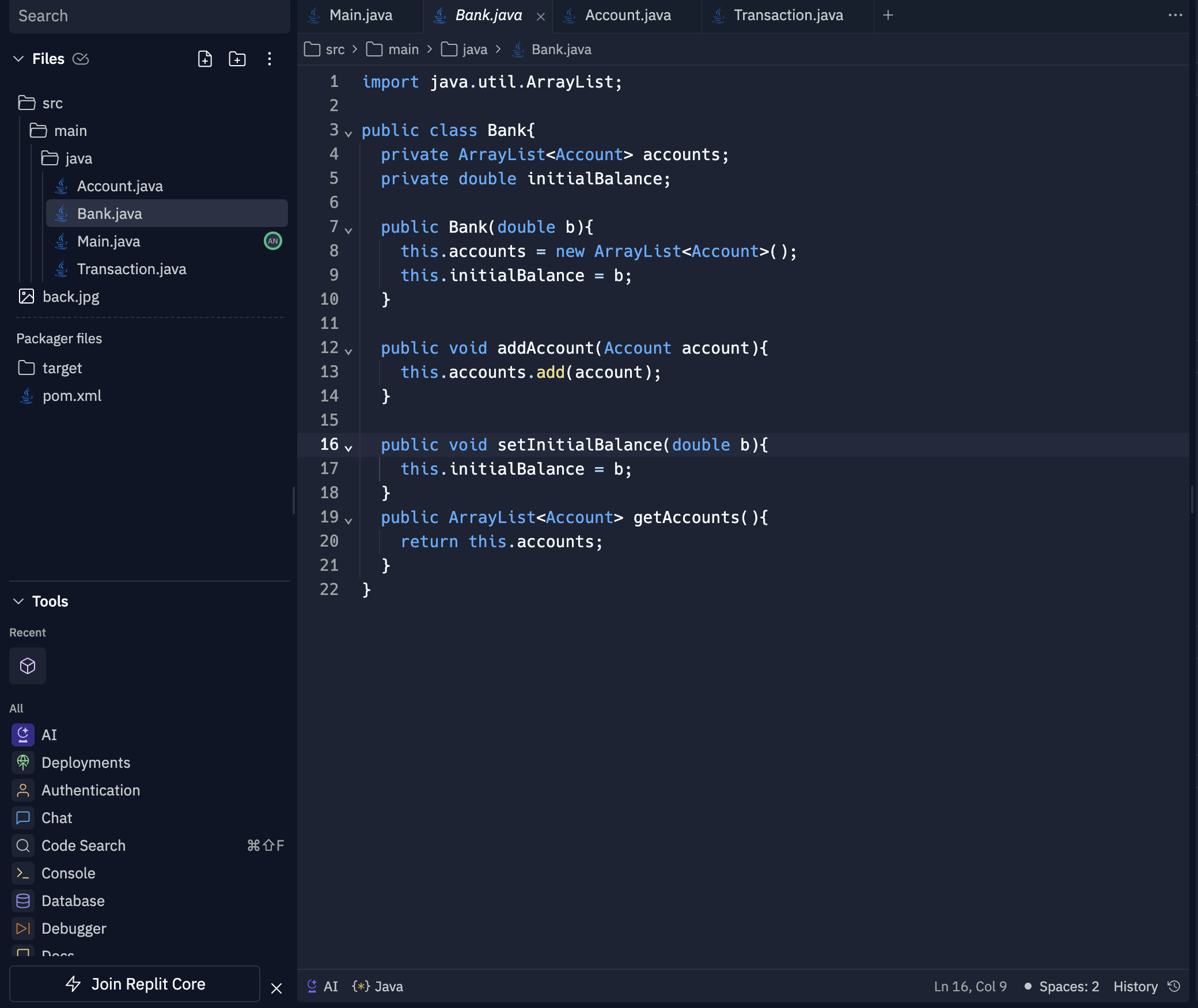 The project was built using Java, focusing on object-oriented principles. The main classes included BankAccount to represent individual accounts, Bank to manage multiple accounts, and a BankManager class to handle user interactions. The project utilized basic file I/O for persisting account information between sessions.