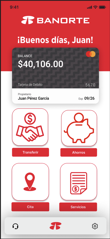 Banorte App LITE home page for new users! An easy way to start managing your finances!