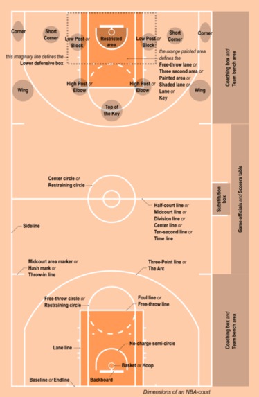 Measurements and time limits discussed in this section often vary among tournaments and organizations; international and NBA rules are used in this section.