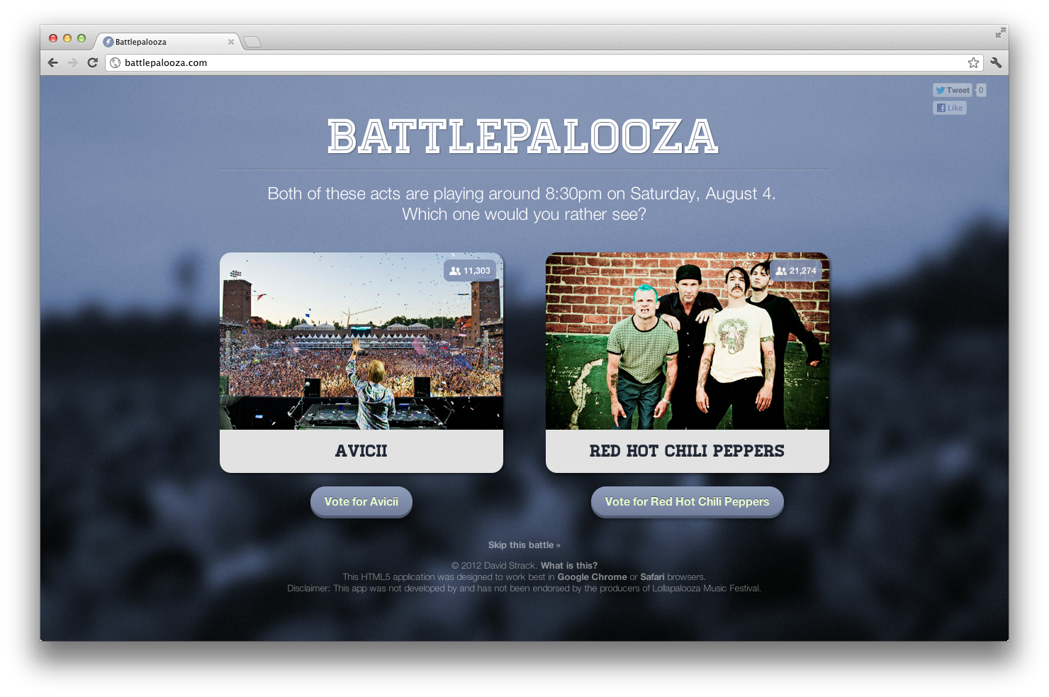Battlepalooza is an HTML5 web app that works best in Chrome and Safari browsers.