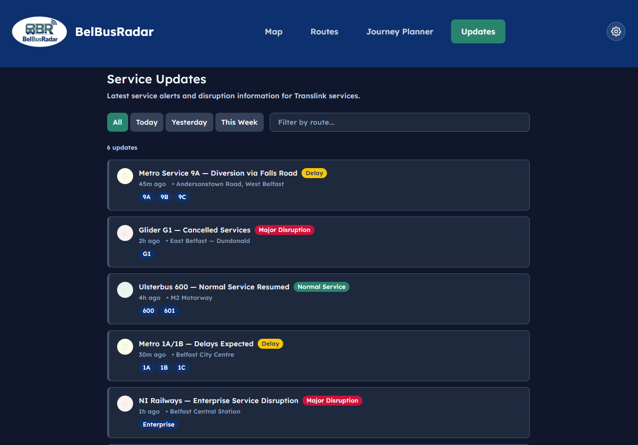 - No live vehicle GPS — Translink's API is a journey planner, not a vehicle tracker. We interpolated bus positions between stops based on departure times using maths