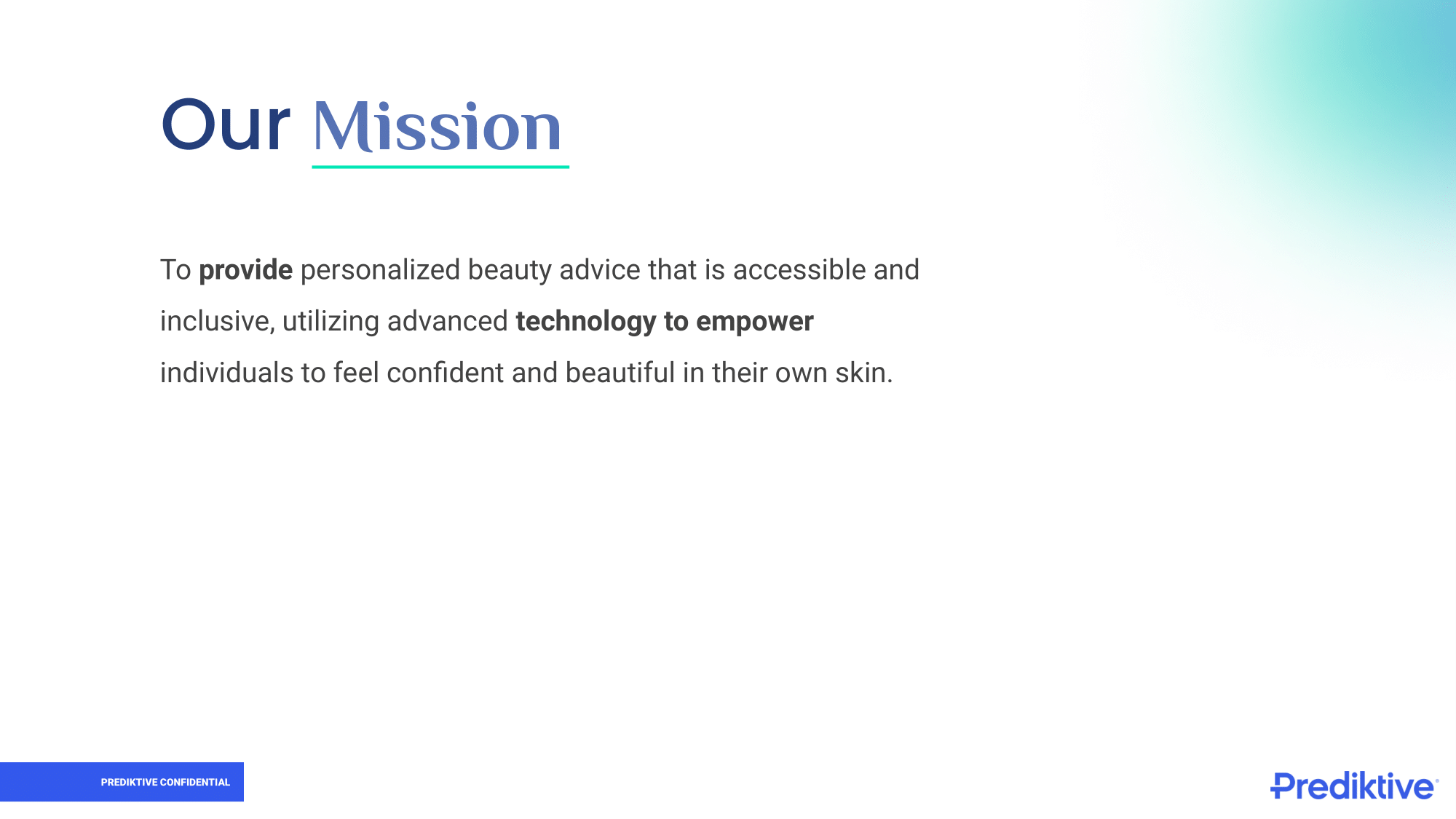 Our mission is to provide personalized beauty advice that is accessible and inclusive, utilizing advanced technology to empower individuals to feel confident and beautiful in their own skin.