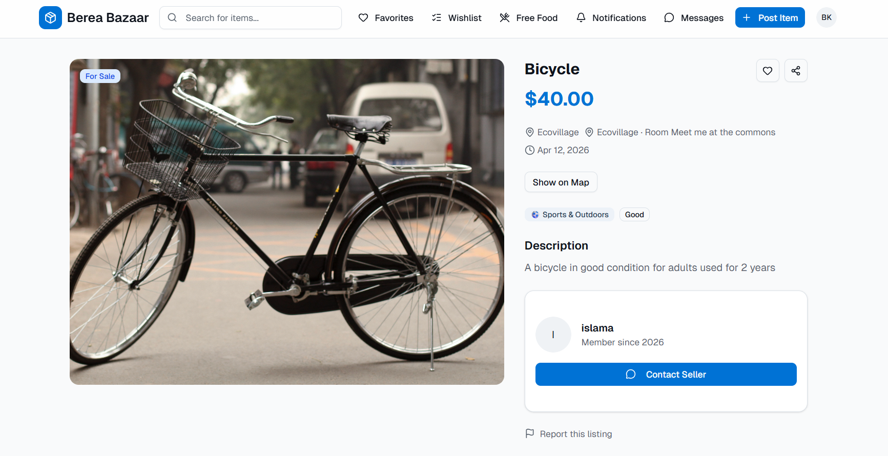 Berea Bazar is a closed, campus centered platform designed to enable safe and efficient exchange of goods and resources within the Berea College community. It is built specifically to keep resources circulating within campus rather than being wasted or discarded.