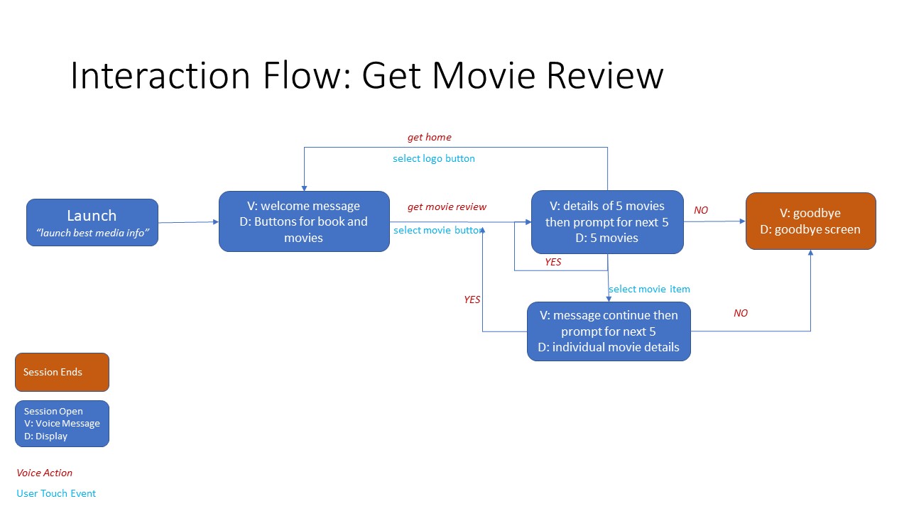 By saying "get movie review", user can get the short movie review of latest movies 5 at a time. Paging option is provided to know more.