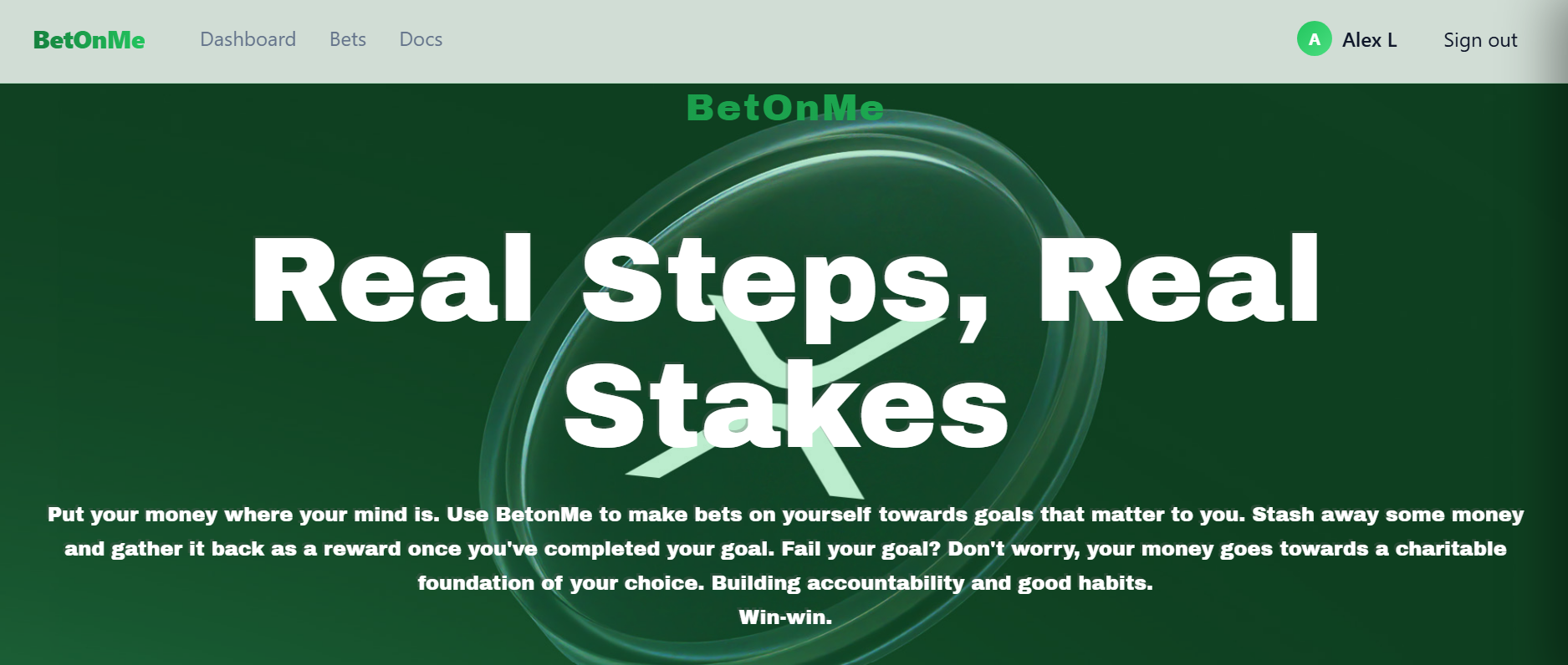 What's next for BetOnMe Friend-vs-friend wagers with shared escrows, leaderboards for streaks and follow-through rates and partial-credit recurring contracts (hit 3 of 5 days and get most of your stake back). Finding a way to allow more flexibility is also important, but it can't be implemented in a way to diminish the core concept.