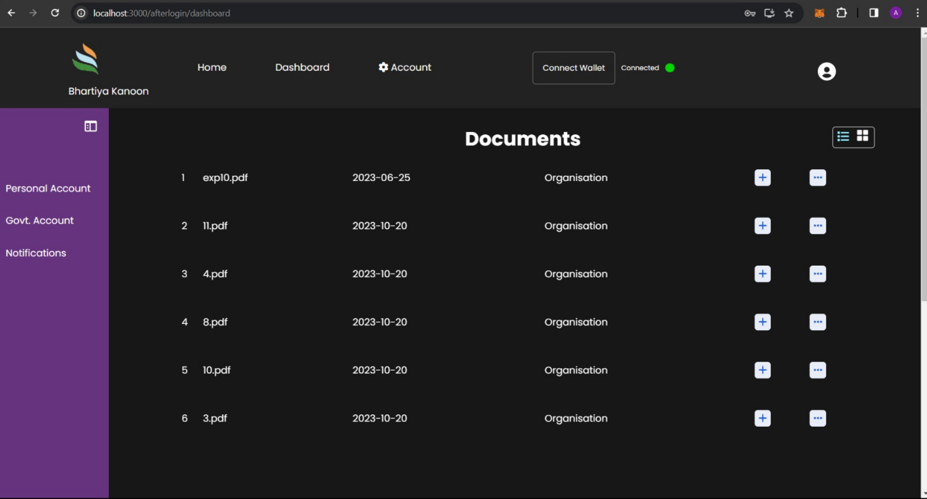 The inspiration for the project "Bhartiya Kanoon" are the challenges in traditional record keeping system, vulnerability to legal document tampering, security gaps, and an inadequate access management system. Lack of transparency erodes trust, while paper-based methods inflate costs and reduce case management efficiency. Complex legal jargon confuses non-legal individuals, and lengthy legal documents are difficult and time-consuming to read.