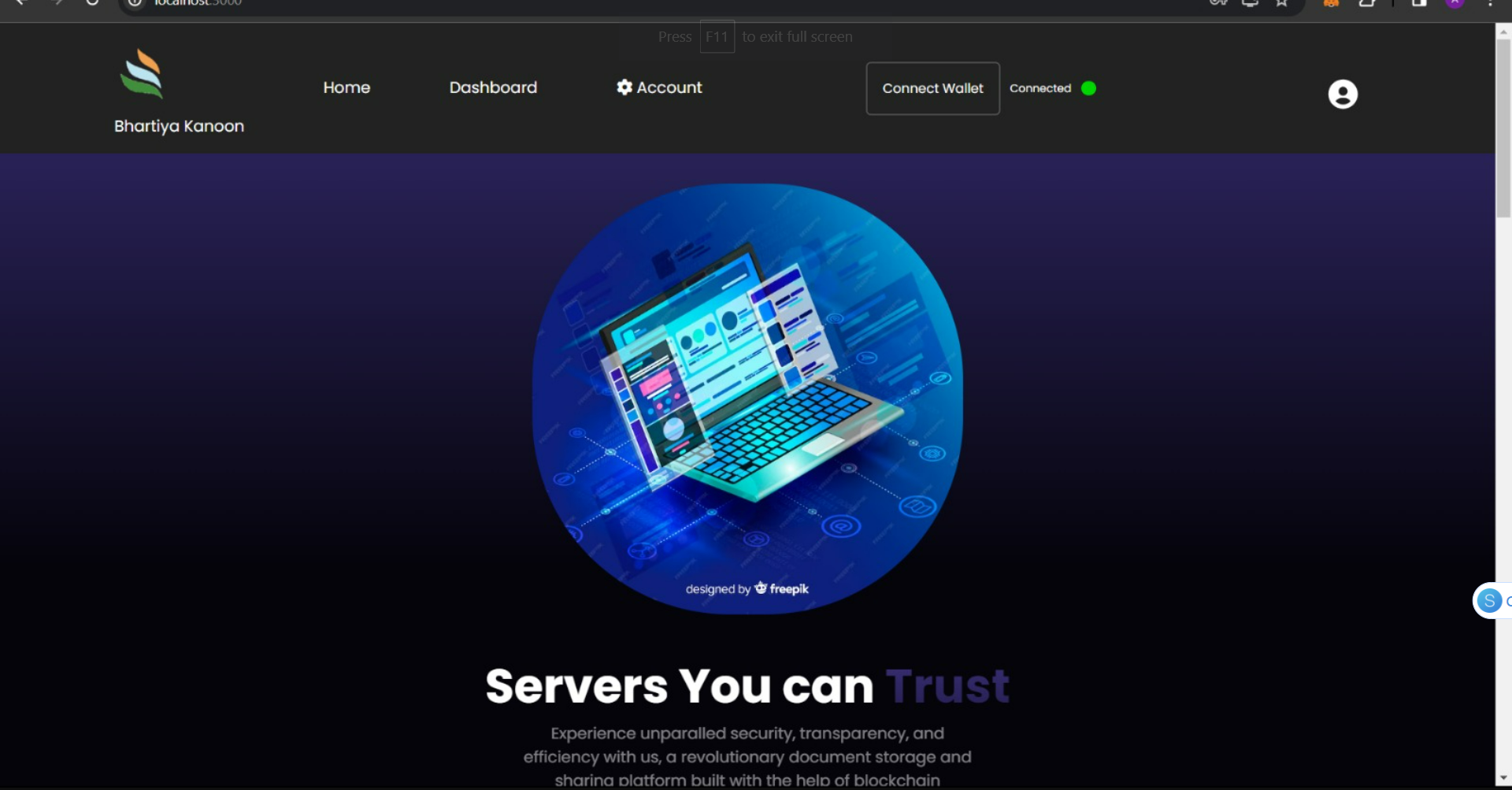 It is an integrated platform that combines a blockchain-based e-vault for secure legal records and an AI-powered legal documentation assistant. The blockchain-powered e-vault ensures the utmost security of legal documents, utilizing Non-Fungible Tokens (NFTs) for authentication and decentralized storage for tamper-proof records. This guarantees data integrity and prevents unauthorized access, addressing the concerns about document security. Simultaneously, our AI-powered legal documentation assistant streamlines document management by automating organization, employing Optical Character Recognition (OCR) for text extraction, and generating multilingual summaries through machine learning. We are also empowering users with smart contracts, granular access control, and a user-friendly interface, facilitating seamless integration with traditional legal systems. Our monetization strategies include client-based compensation models, subscription plans, and a legal professional marketplace.