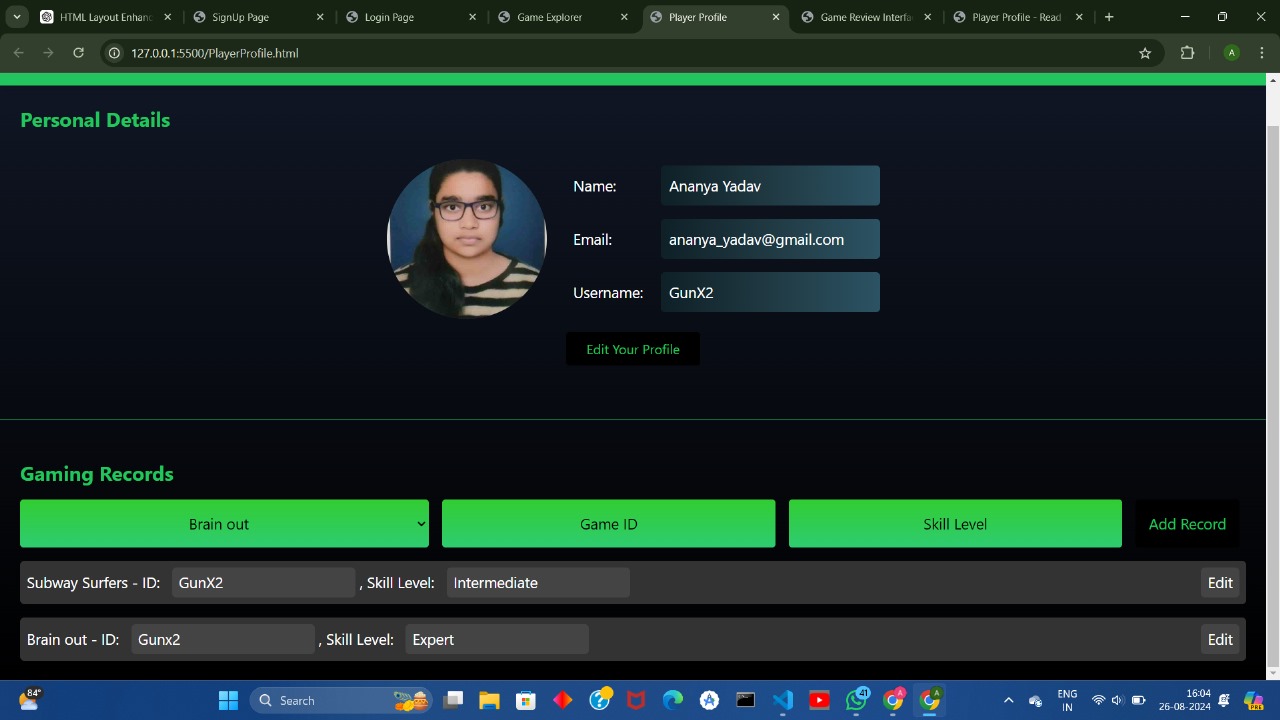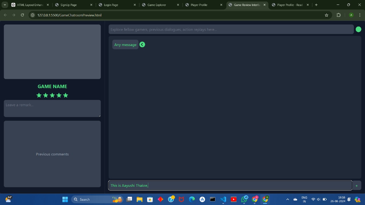 Inspiration: We were driven by a passion for gaming and a desire to create a unified space where gamers can connect and share their experiences.