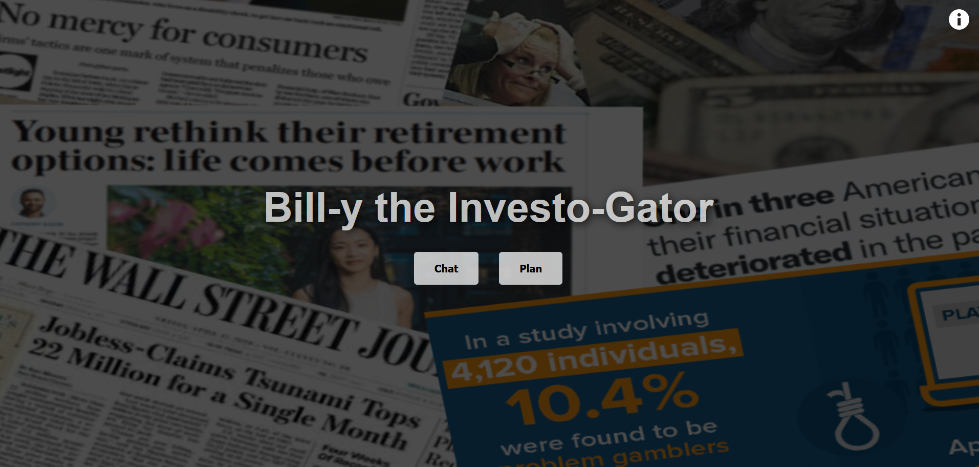 Bill-y the Investo-Gator was created to help people make smarter financial decisions by learning from their real spending habits. Personal finance can be overwhelming. Bank statements are dense, patterns are hard to spot, and meaningful insights often get lost in the noise. We wanted to build a friendly, accessible tool that can sift through financial data and turn it into clear, actionable guidance.