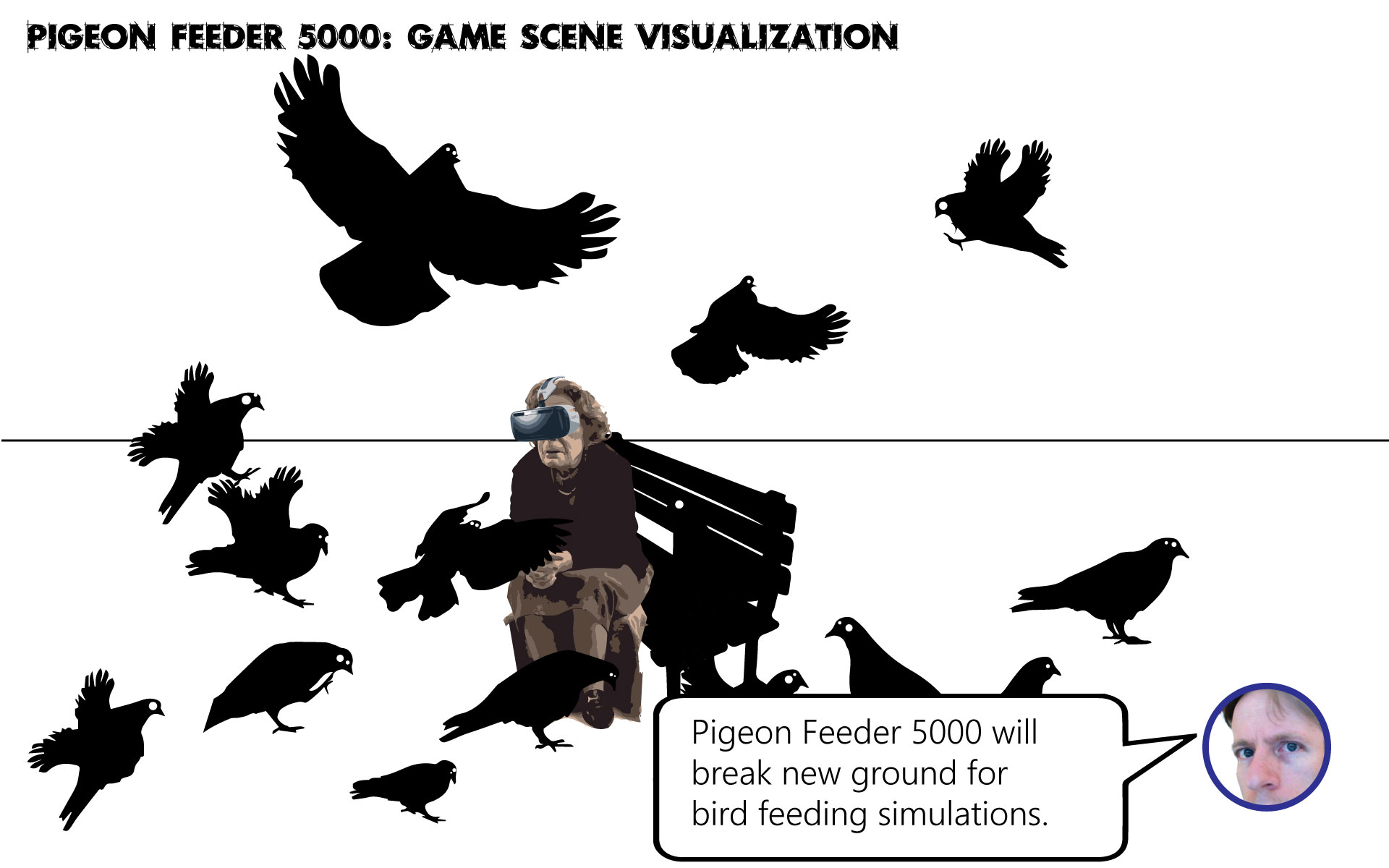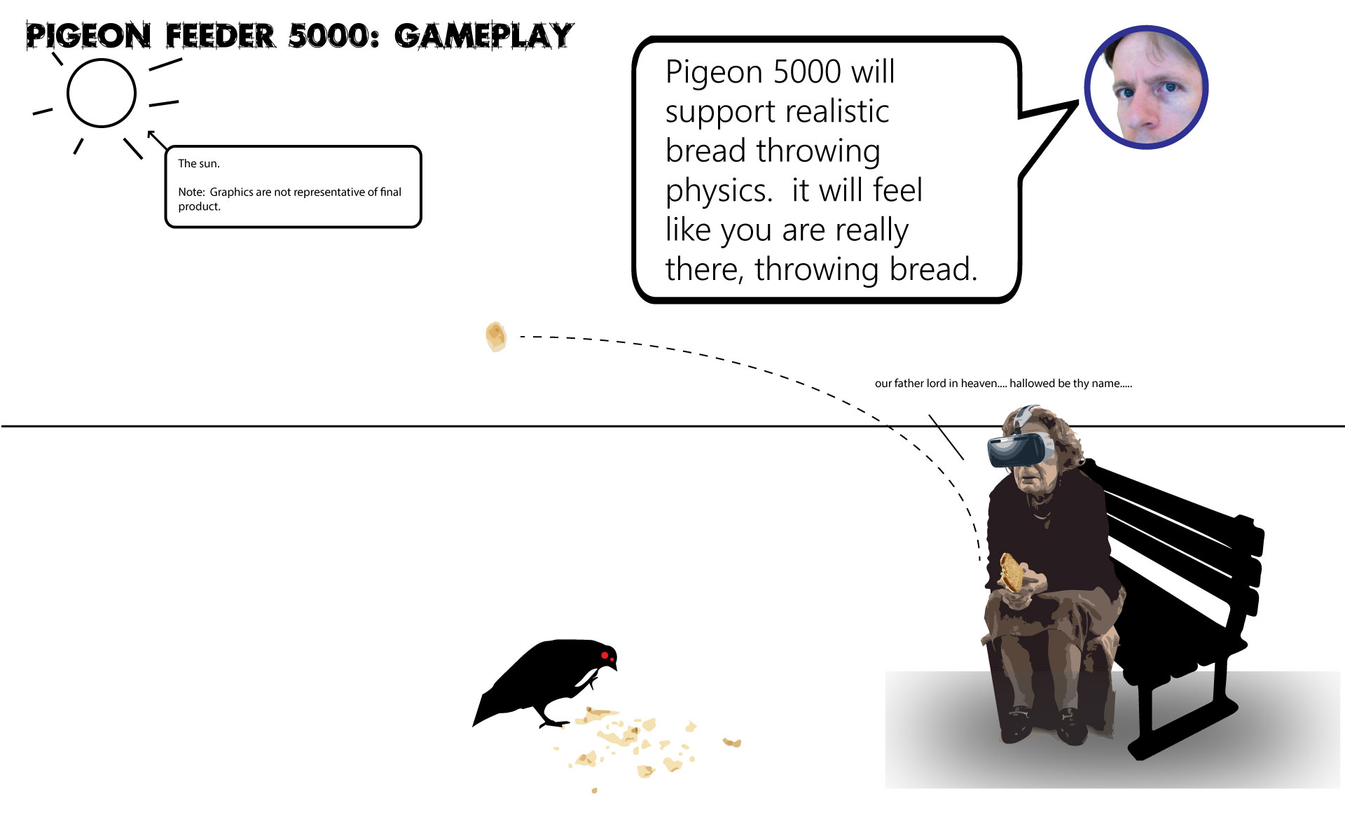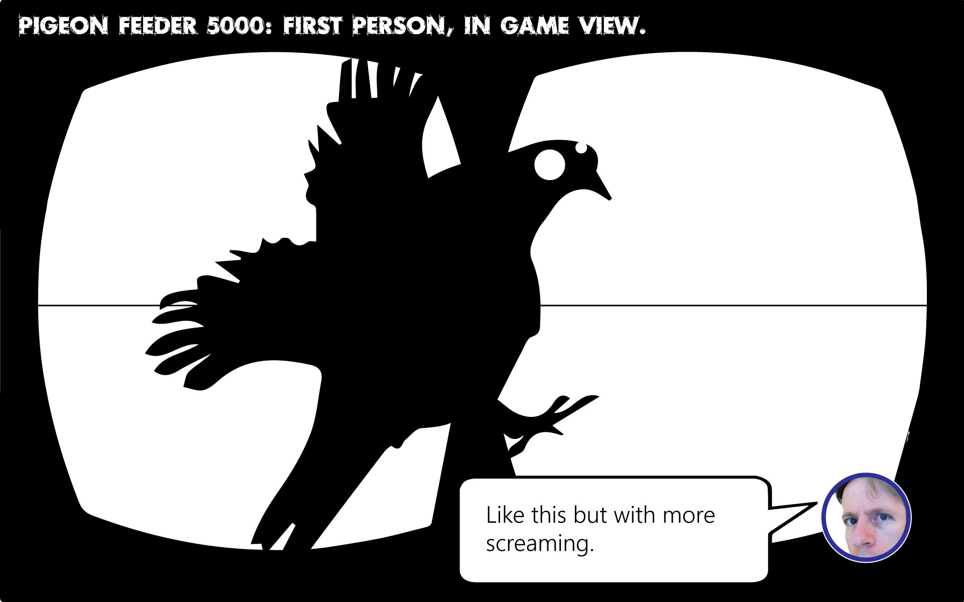 What might look like a calm day feeding the birds to the casual observer is actually a life and death struggle. You play as an elderly woman feeding the birds on a park bench. You've come prepared with a some left over toast from breakfast, but NOTHING could prepare you for the challenge you are about to face.