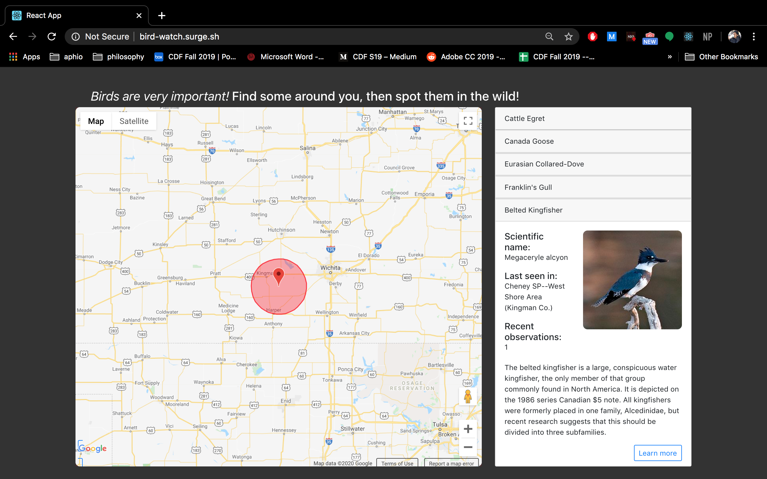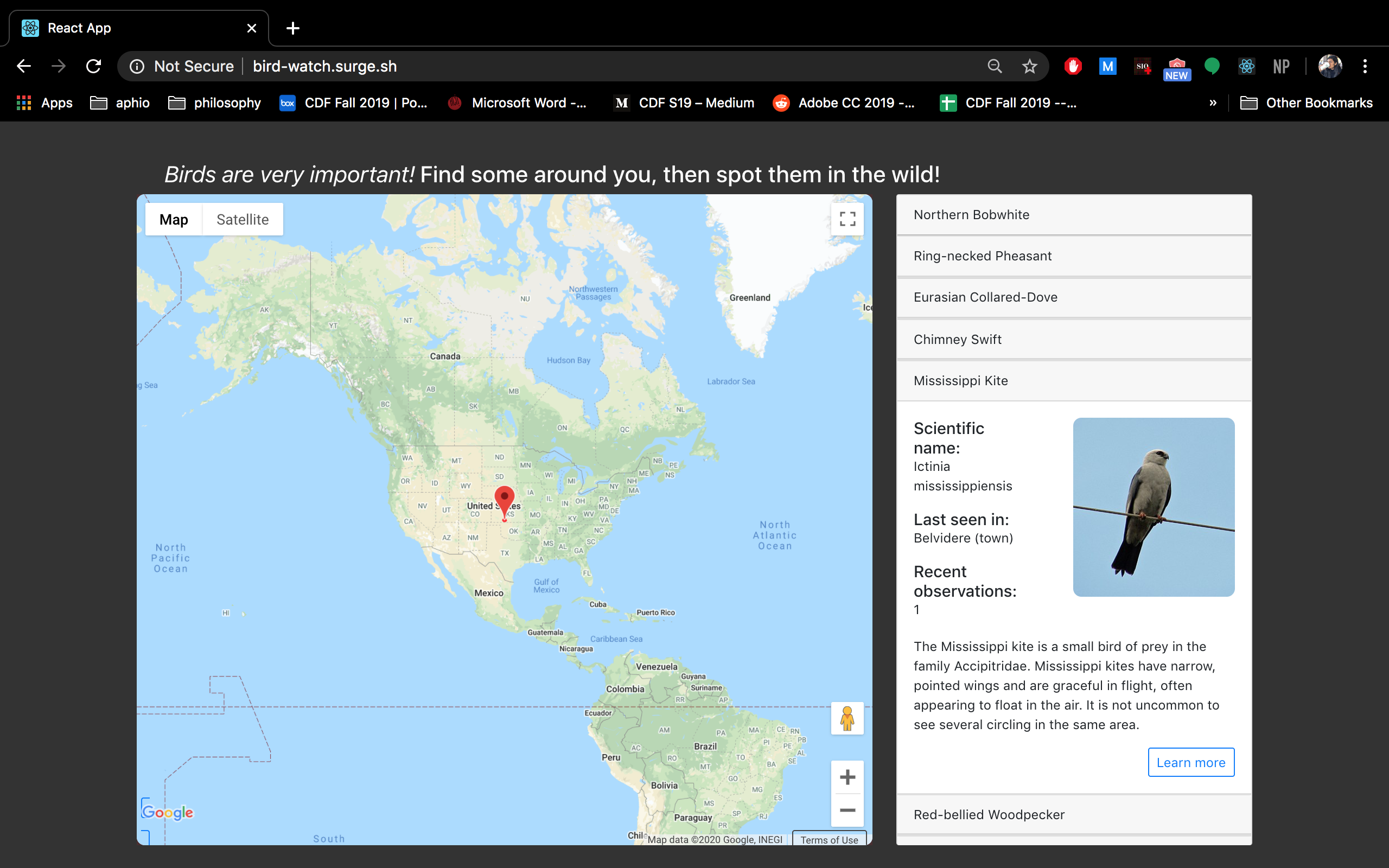 We made a webapp using react + redux. We also used the Google maps API to generate a map and the ebird api to access bird species information.