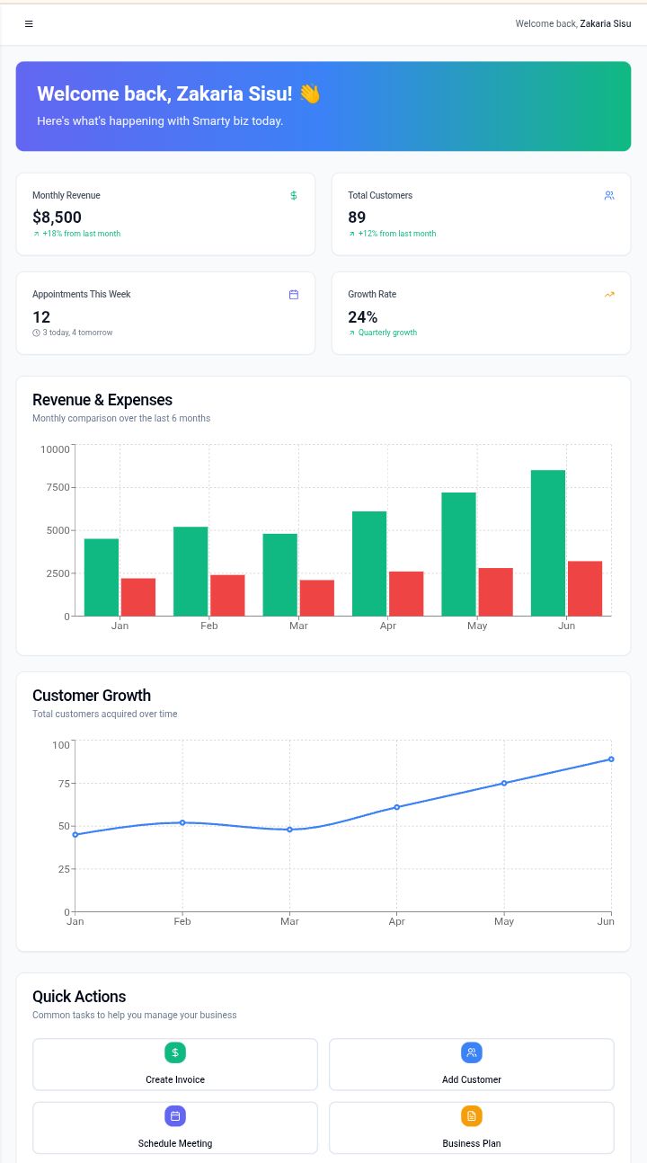 > 📊 Dashboard | 📅 Booking | 💰 Invoices | ✨ Business Plan