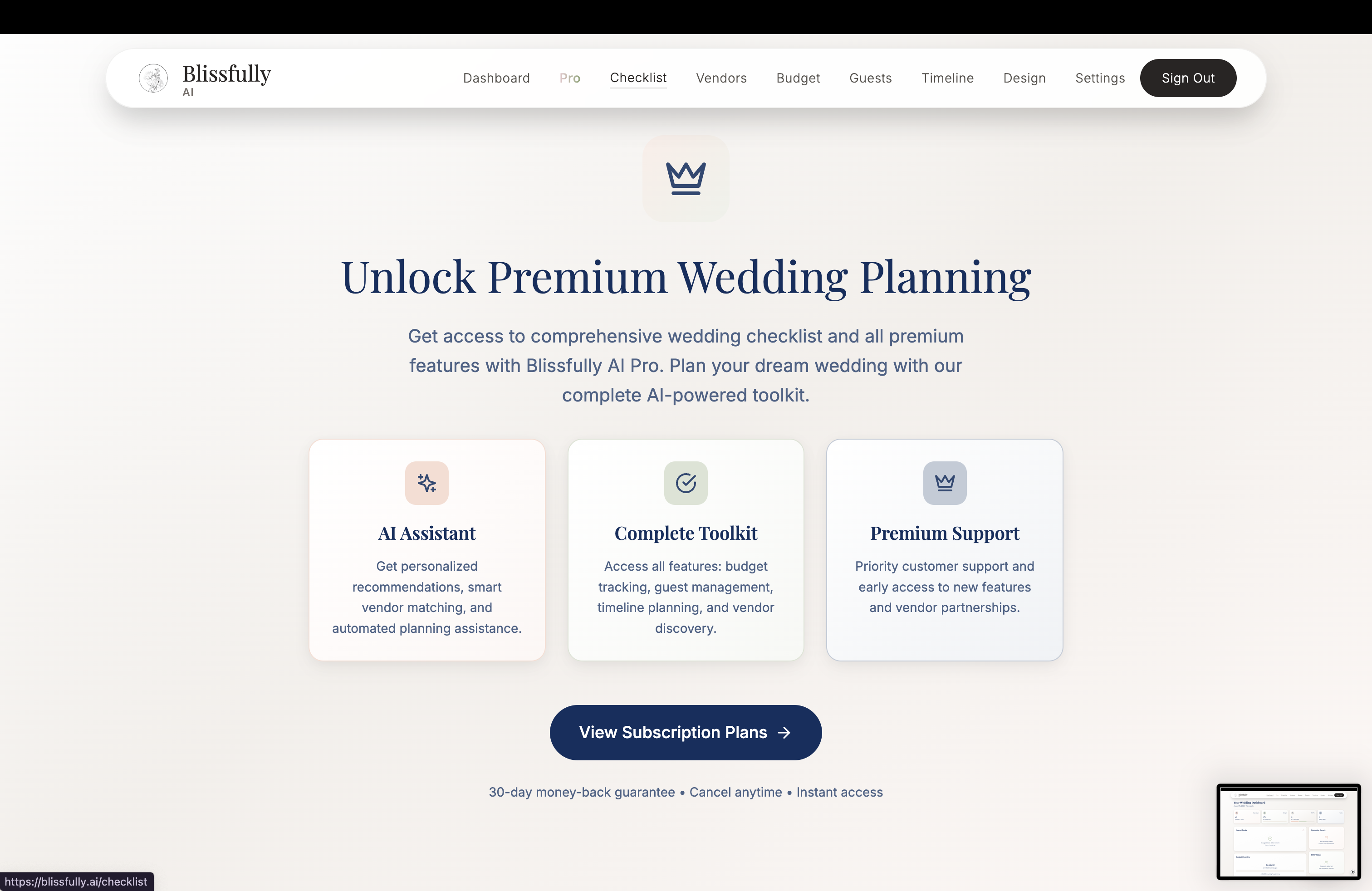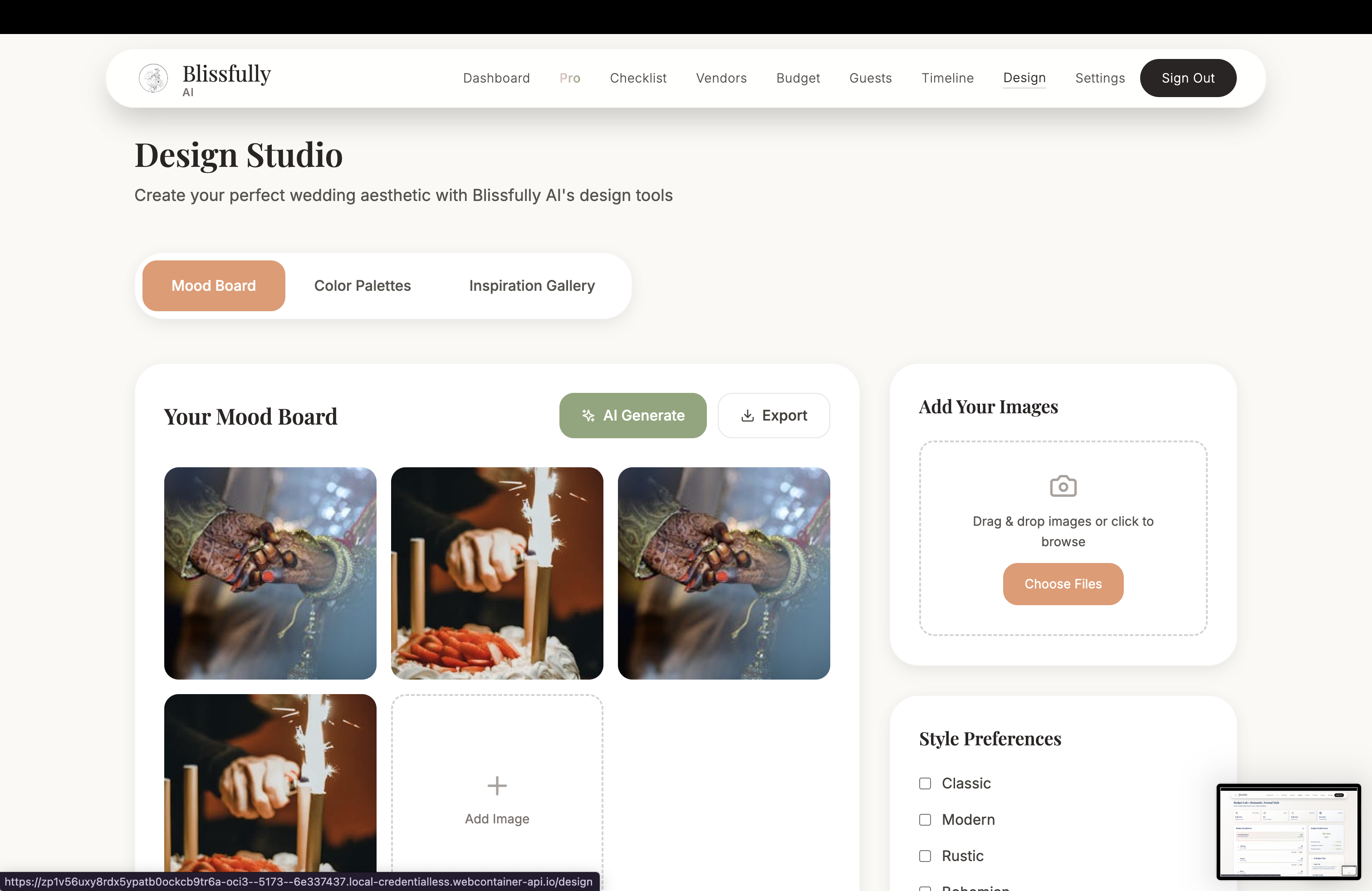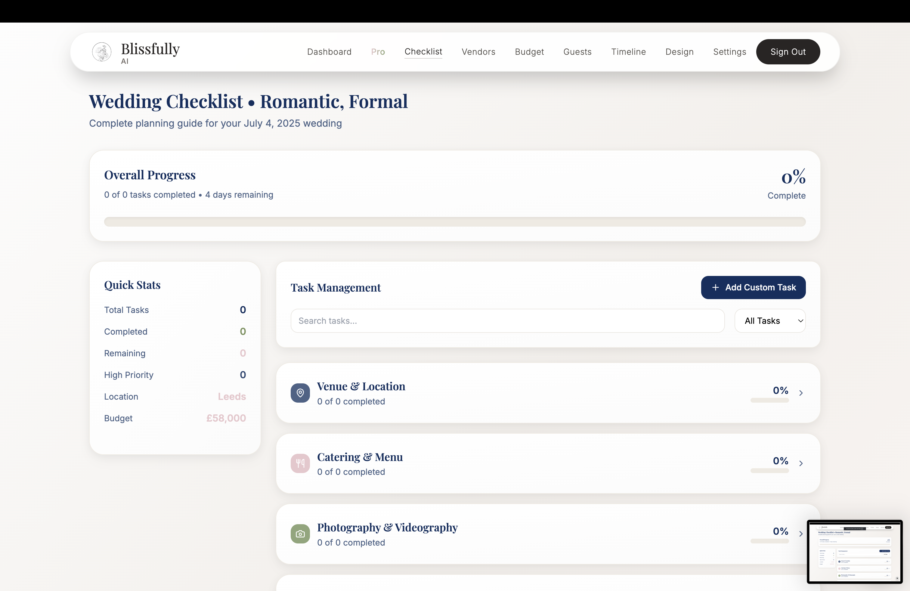 blissfully ai is a very helpful platform to organise your wedding, but the supercharged AI functionality we have added is the automated, unbiased wedding research. like, it looks for vendors, checks prices, helps with the budget, and even tries to get you a deal. it’s not just a list of people who paid to be on the platform (like all the competitors). it actually checks everywhere. you just tell it what you want and it sorts it out.