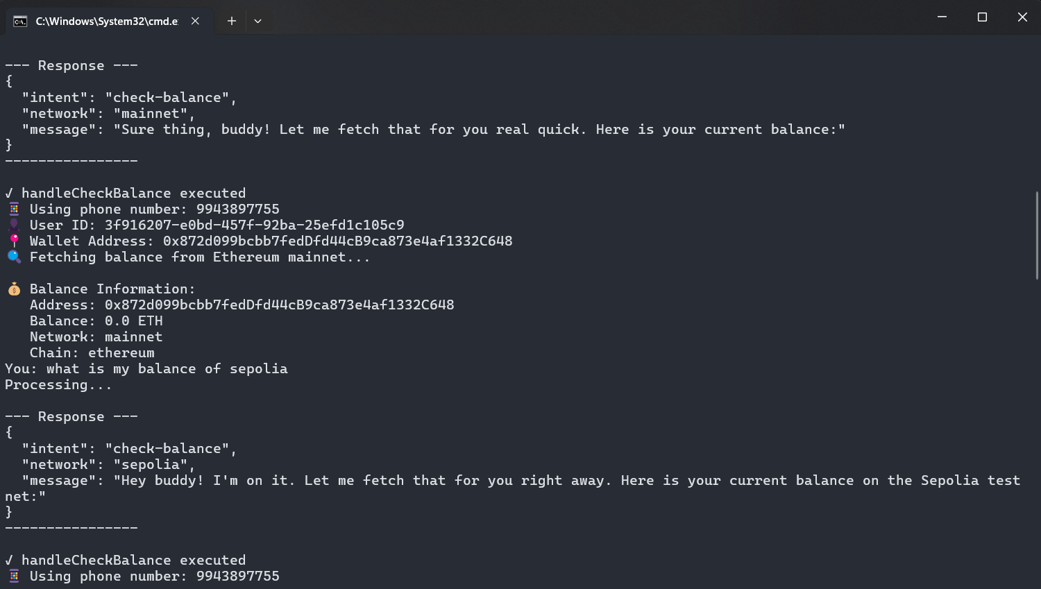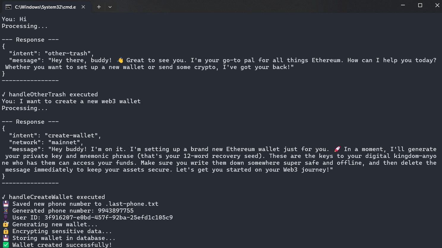 BlockBuddy is a WhatsApp-based Web3 wallet that brings blockchain technology to the familiar messaging platform. It enables users to create Ethereum wallets, check balances, transfer ETH, look up ENS (Ethereum Name Service) records, and manage their crypto assets directly through WhatsApp conversations. The bot features intelligent intent recognition powered by Google's Gemini AI, which interprets natural language commands and routes them to appropriate blockchain operations. Users can interact with both Ethereum mainnet and Sepolia testnet, perform ENS lookups with comprehensive record fetching (including social profiles, crypto addresses, and content hashes), and execute secure transactions with encrypted private key storage. The system stores user data and wallet information in a Hasura GraphQL database, providing a seamless bridge between Web2 communication and Web3 functionality.
