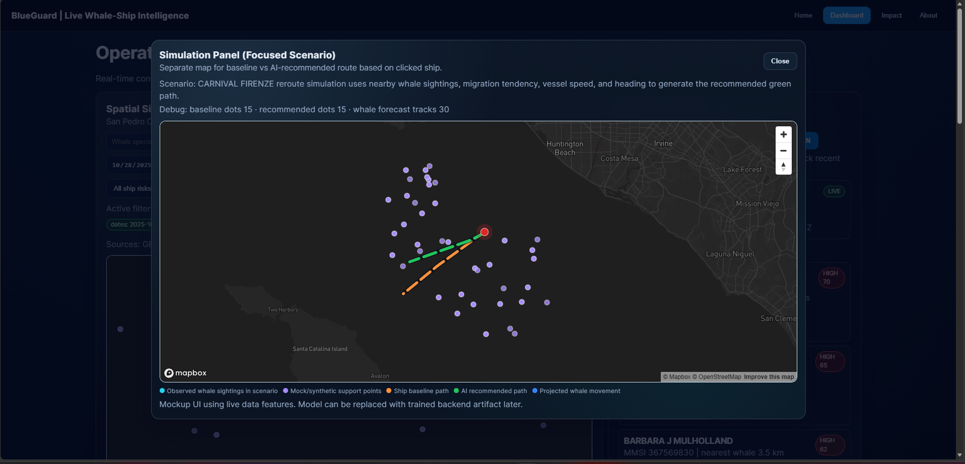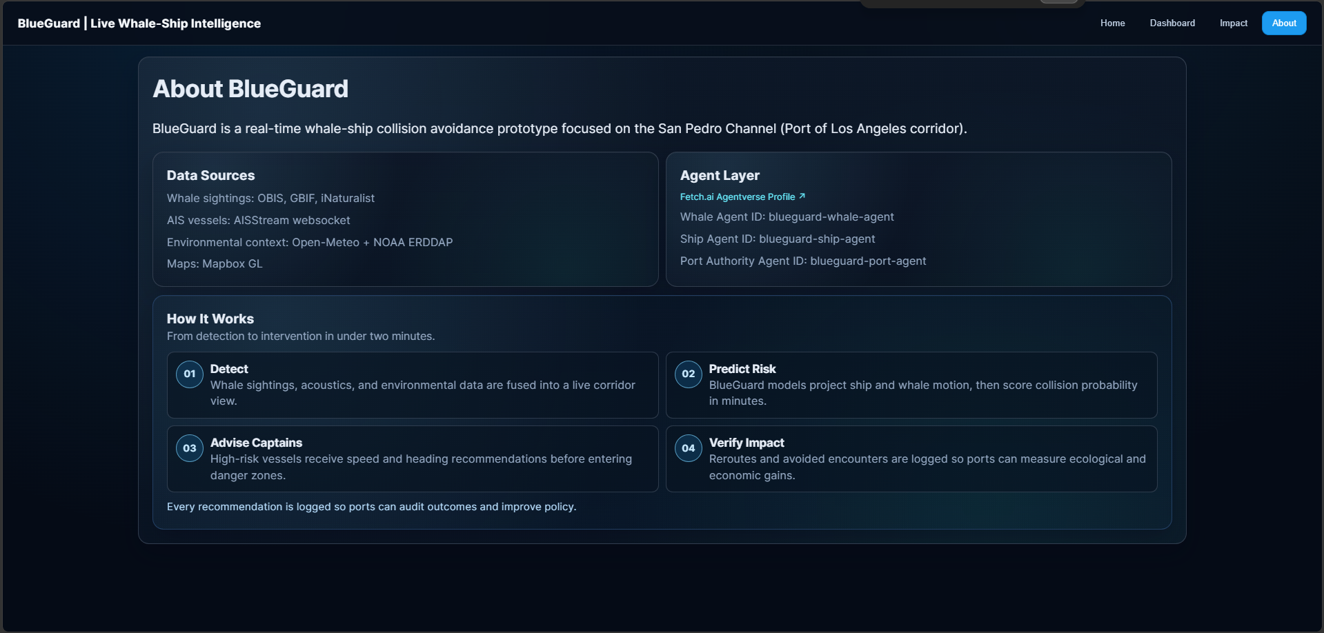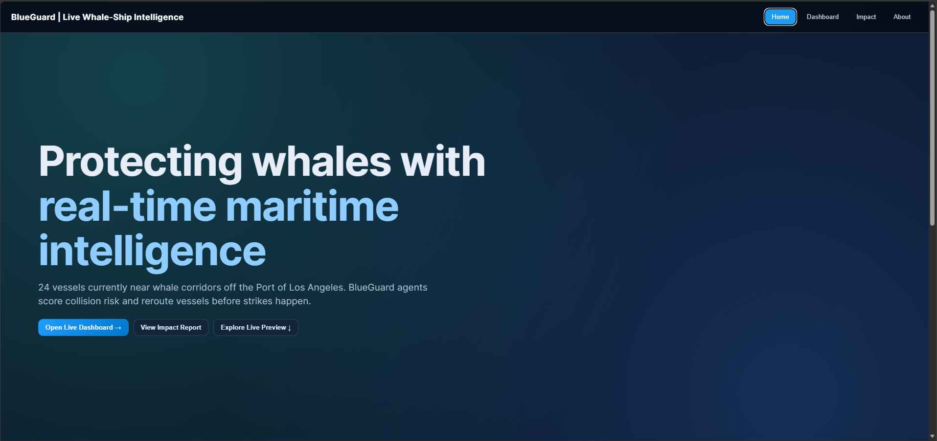 BlueGuard is a live whale–ship intelligence demo for the LA / San Pedro shipping corridor.