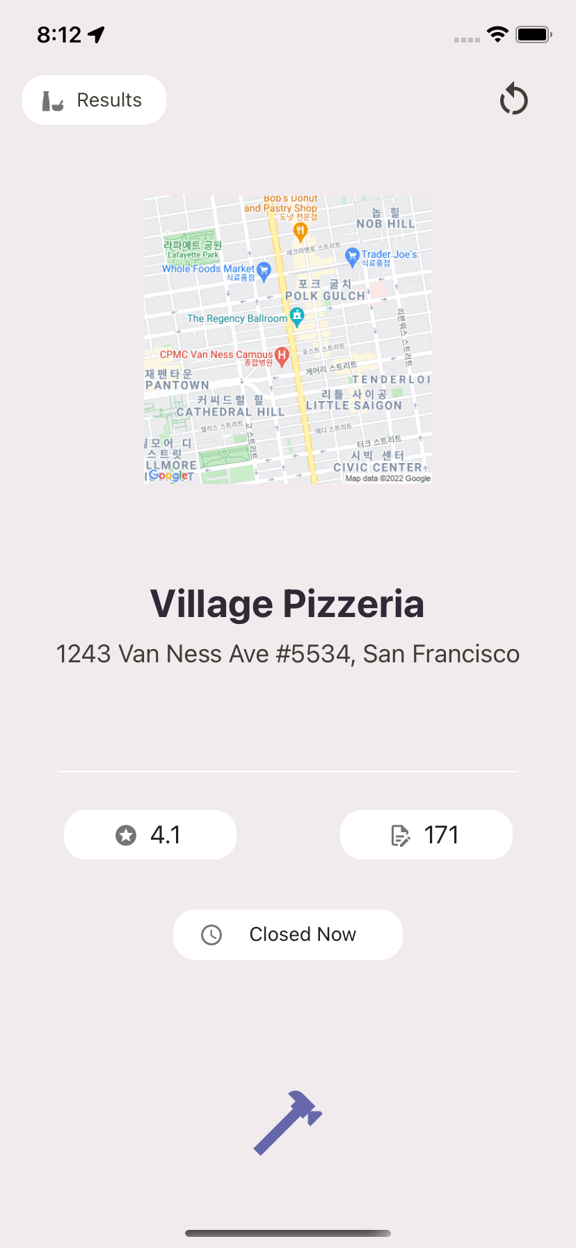 We used JavaScript for the backend React-Native and Expo for the frontend. Using Google Places APIs we were able to get information about restaurants based on the location of a user. We asked the user to select a radius, type of food, and provide a location before giving a recommendation. Based on the input of the user, we searched for the restaurant using Google Nearby Search API. We returned the name, address, phone number, open status, and distance from the user to the restaurant by walking and driving to the user. We had a color theme of lavender with more white color in it.