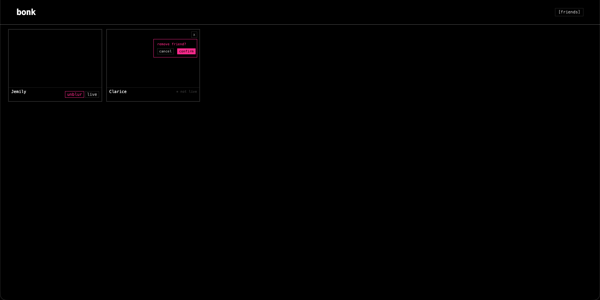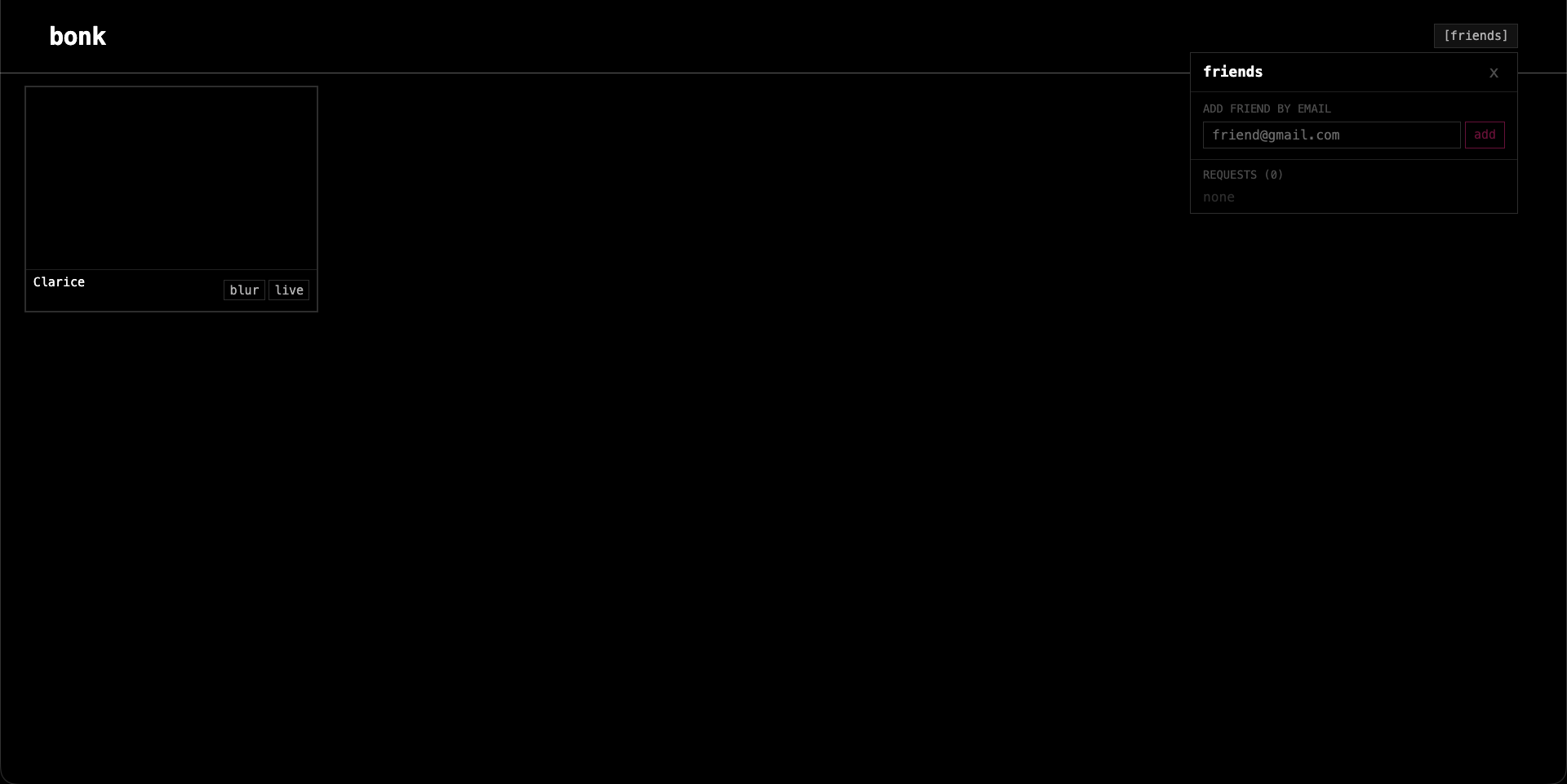 On Friday afternoon, we settled on the concept of an accountability platform and spent the day sketching designs and planning the project architecture. We then implemented the React frontend, including the landing page, the monitoring grid, and the “bonk” button. Once the UI was functional, we built the backend with Express, Socket.io, and Node.js. We used WebRTC for live signaling and Google OAuth to handle user authentication.