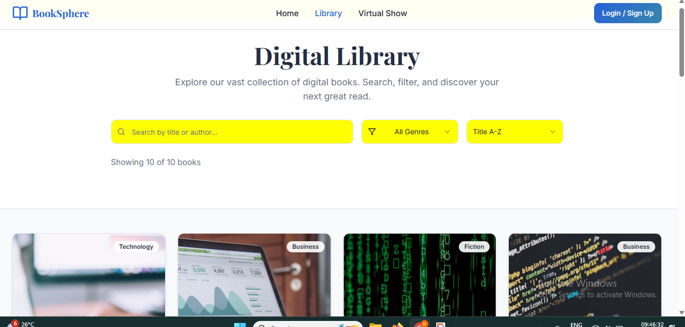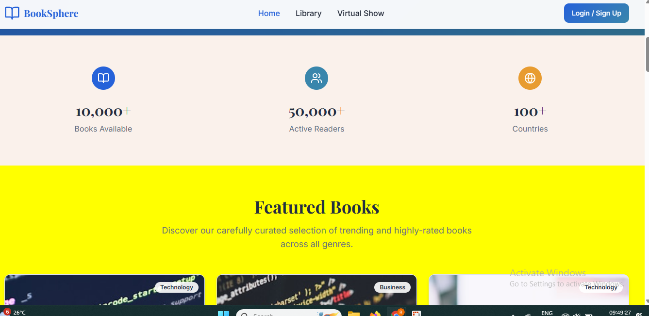 BookSphere is a modern e-library and virtual e-book showcase platform that empowers readers to discover, access, and engage with books from anywhere in the world. Designed for ease, inclusivity, and interactivity, BookSphere bridges the gap between traditional libraries and the digital reading experience.