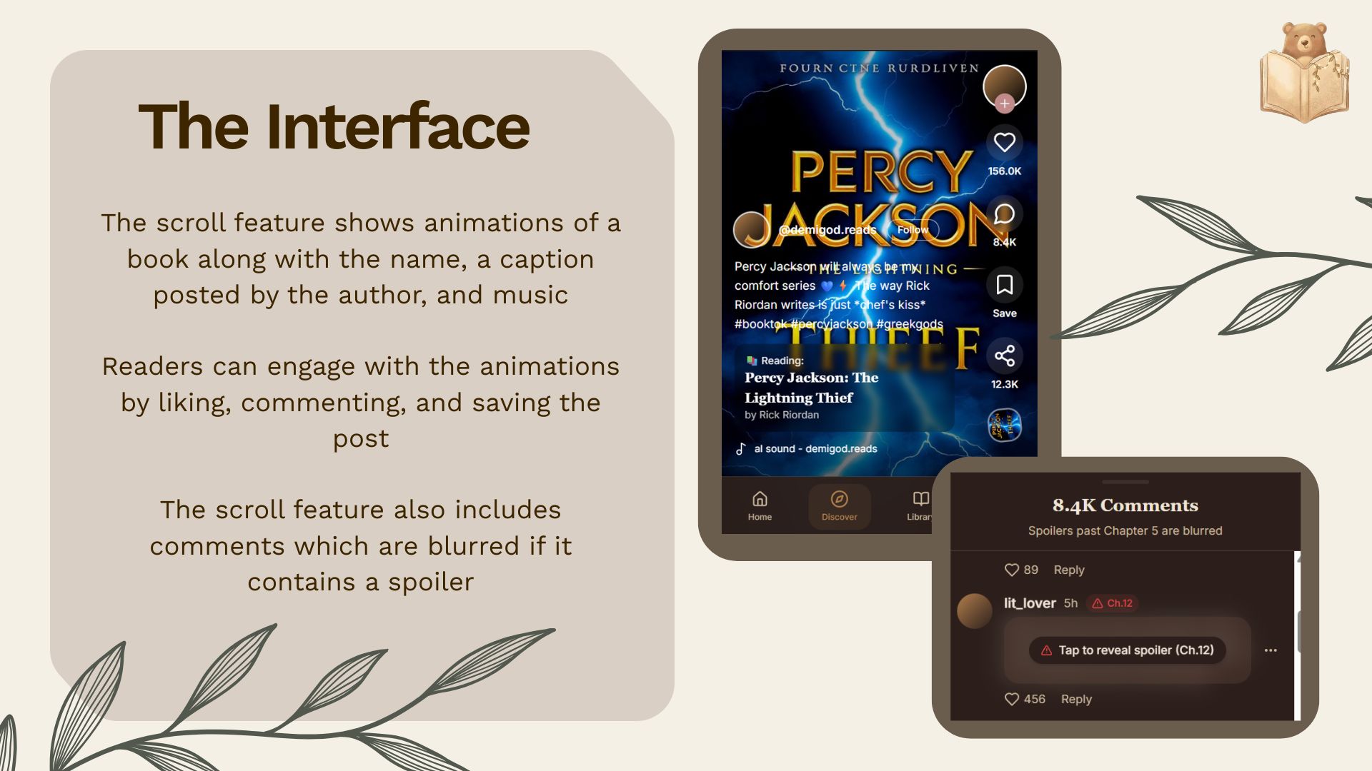 - A scroll tab where readers can scroll through different animations to find a book that suits them