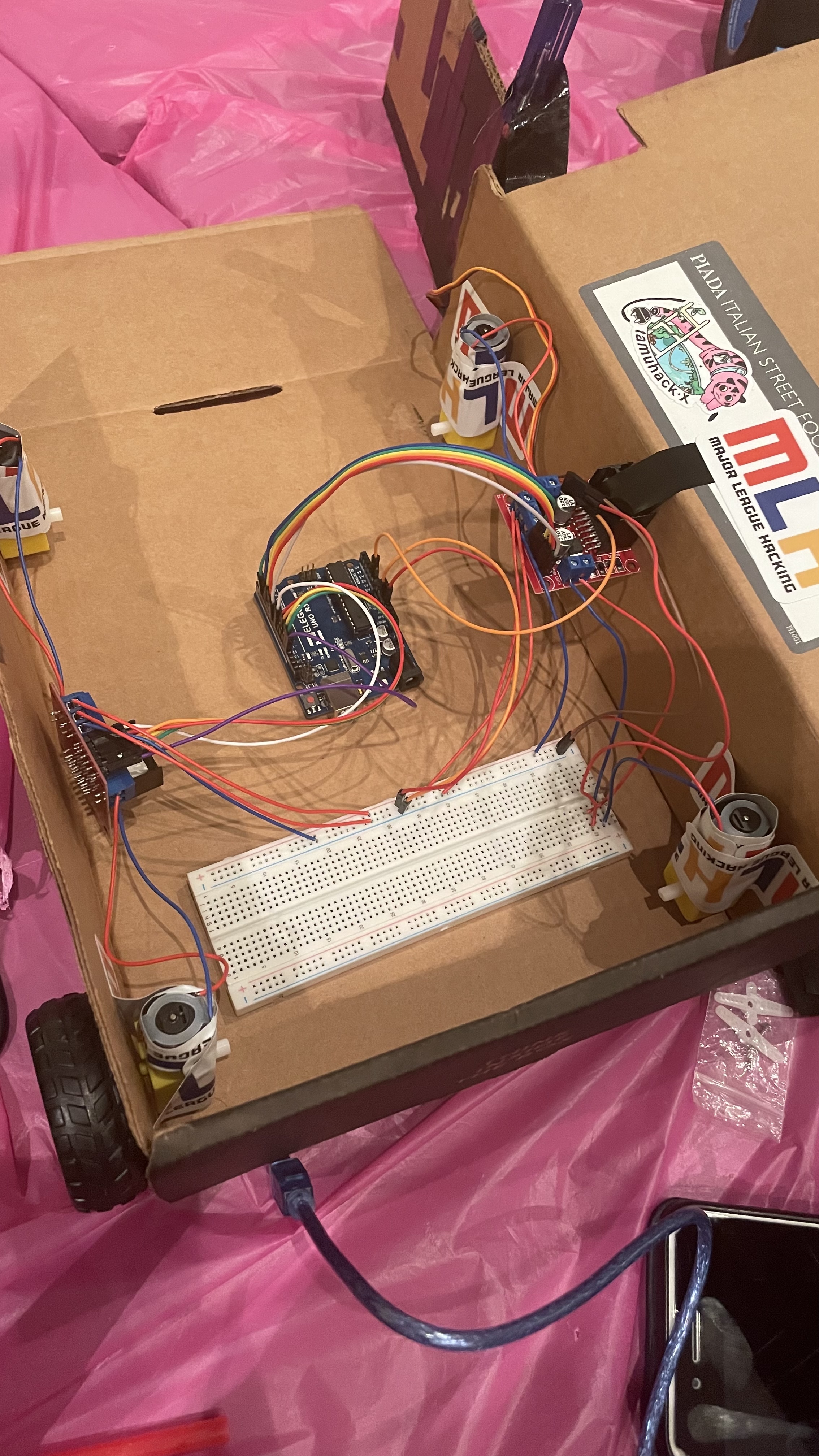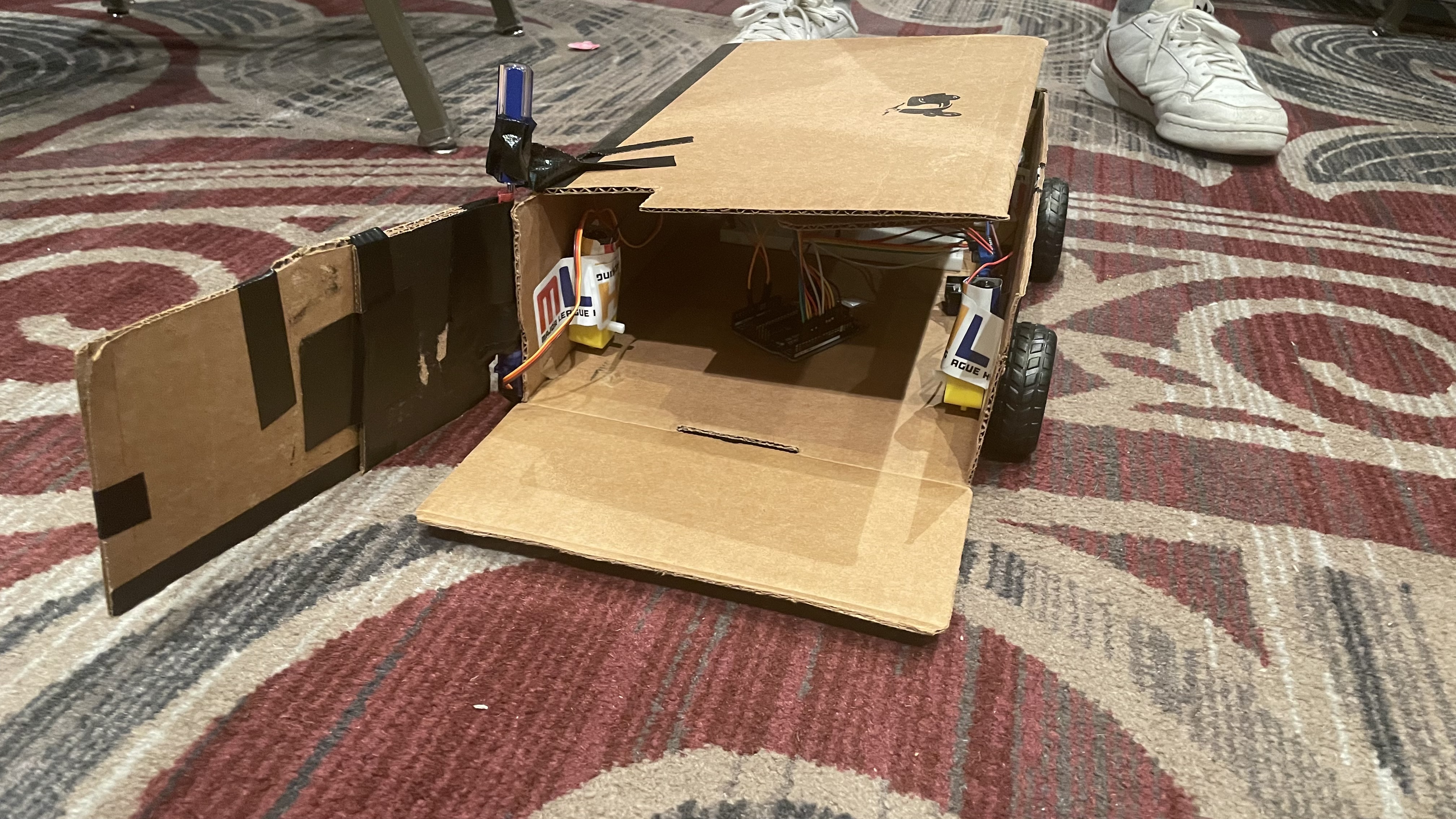 A lot: Connecting raspberry-pi to arduino, figuring out circuits, getting enough power, getting python working, getting an sd card that worked, getting a monitor that worked, food comas, motor wiring malfunctions, rewiring everything