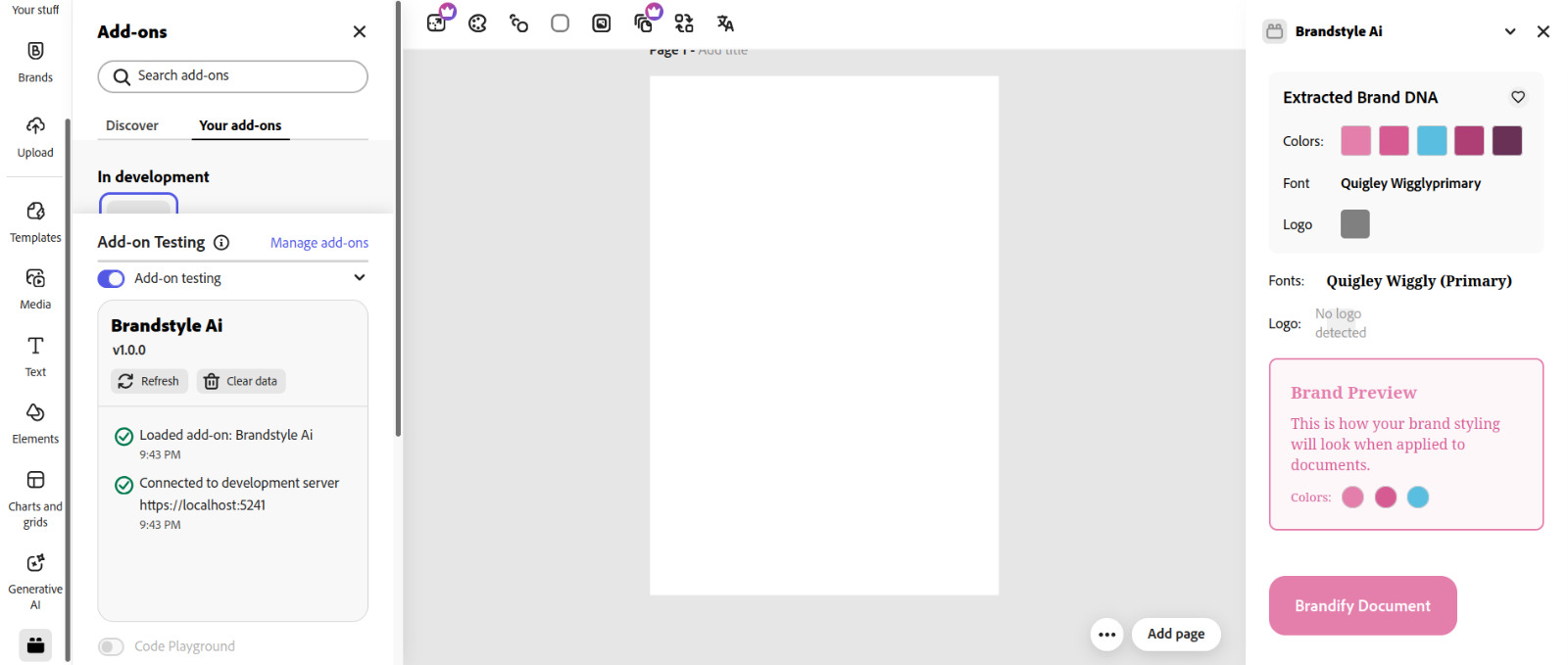 Designers and teams lose hours recreating brand styles for every new project. We wanted a tool that instantly extracts brand DNA (colors, fonts, logo) from any file or URL and applies it directly in Adobe Express—making professional branding fast, effortless, and accessible to everyone.