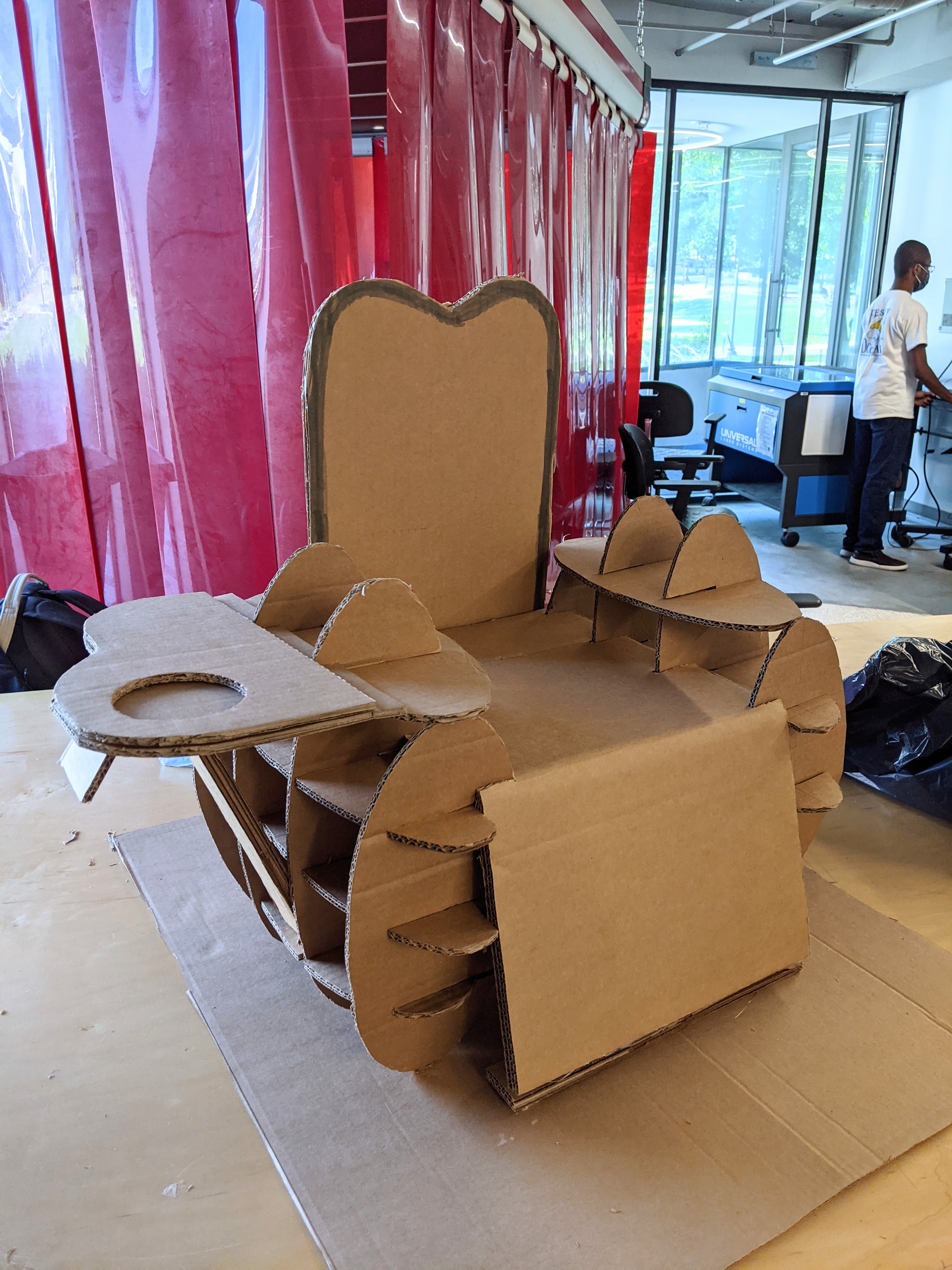 Due to the limited time, we learned so much about distributing tasks and helping each other get the work done as quickly as possible. The idea evolved as we went from just an egg chair to an entire breakfast chair!