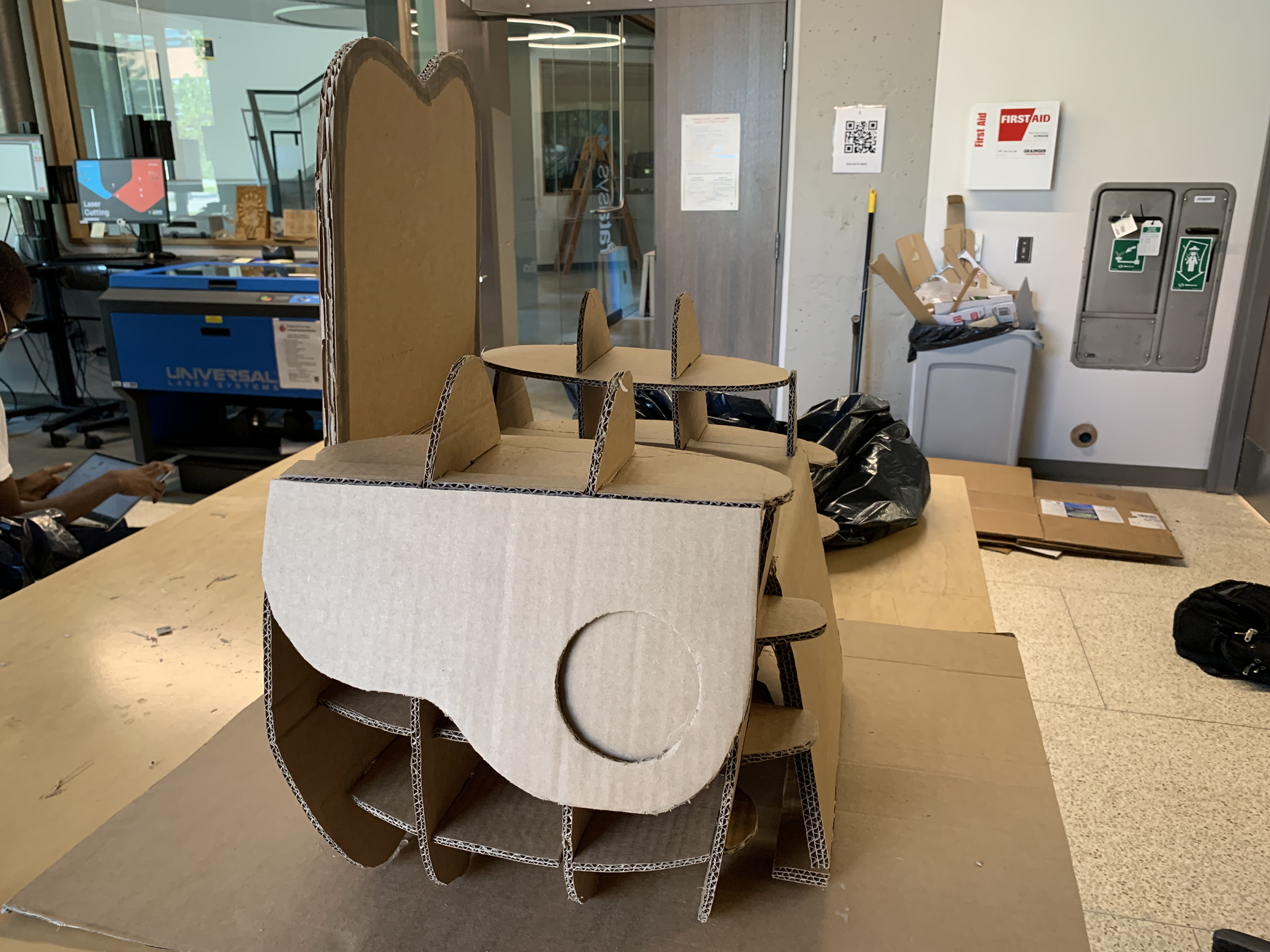 We built it using slits in cardboard and some hot glue all hand made for a natural, childish feel.