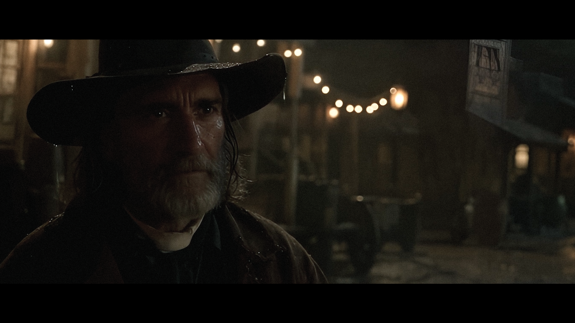 Some shots were deceptively complex. The scene of the drunken Arrow in the saloon required subtle foreground and background movement while keeping him nearly motionless. The small thread of saliva was extremely hard to generate believably. The final shot is a combination of six separate renders stitched together, and it took nearly two days of work.