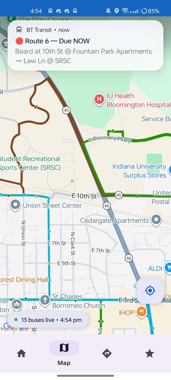 Bloomington's transit apps show stale schedules. We wanted an app that shows live buses near you the moment you open it no searching, no setup.