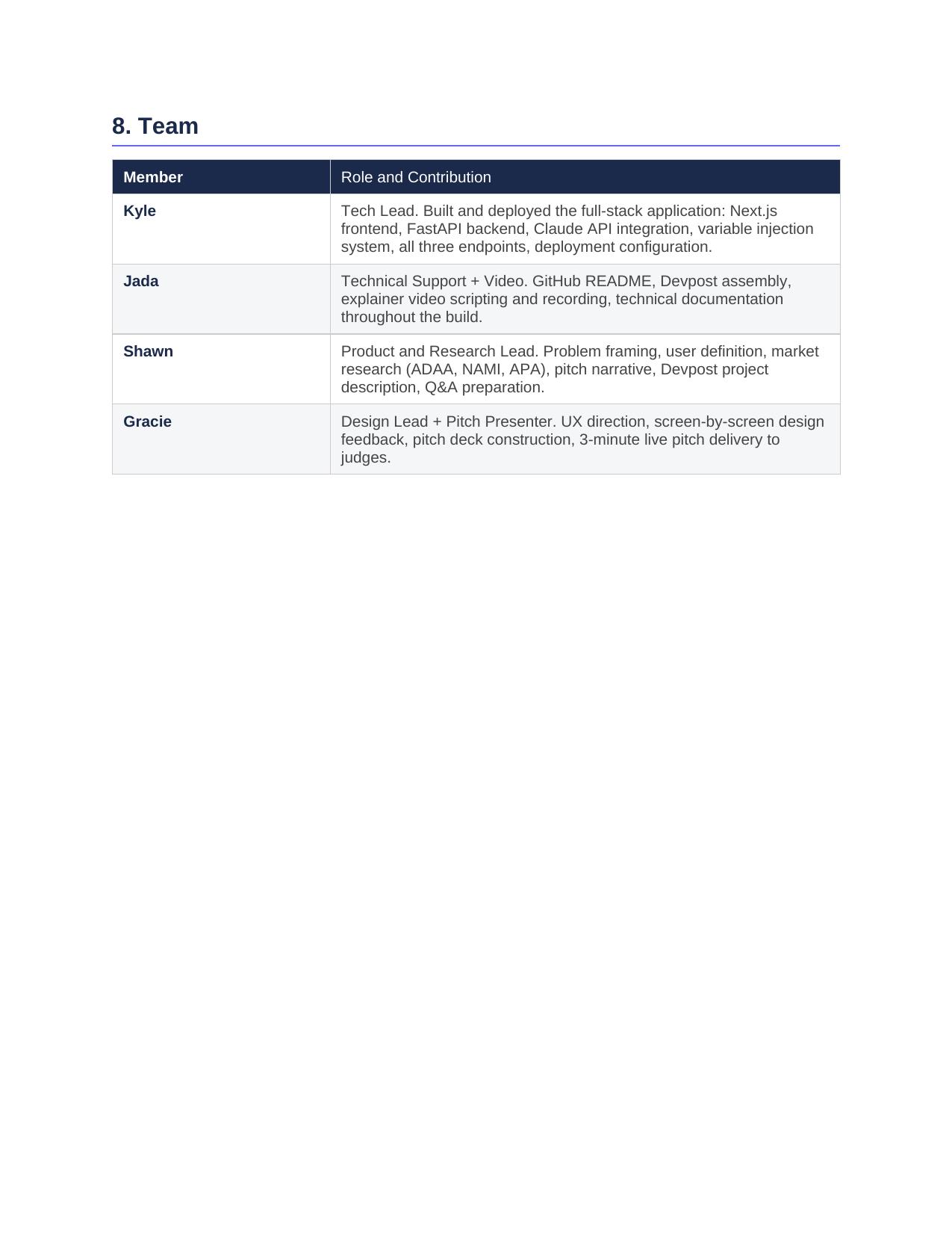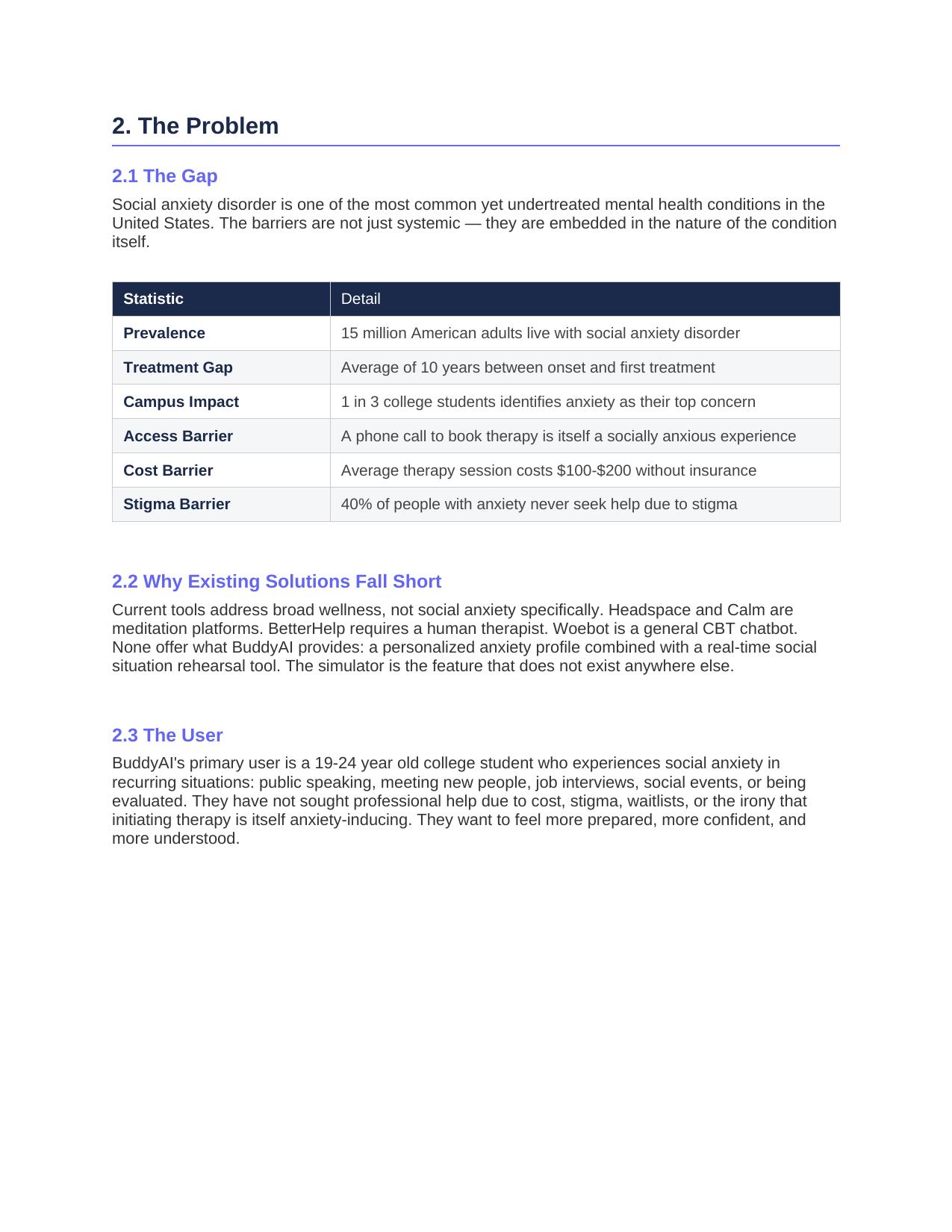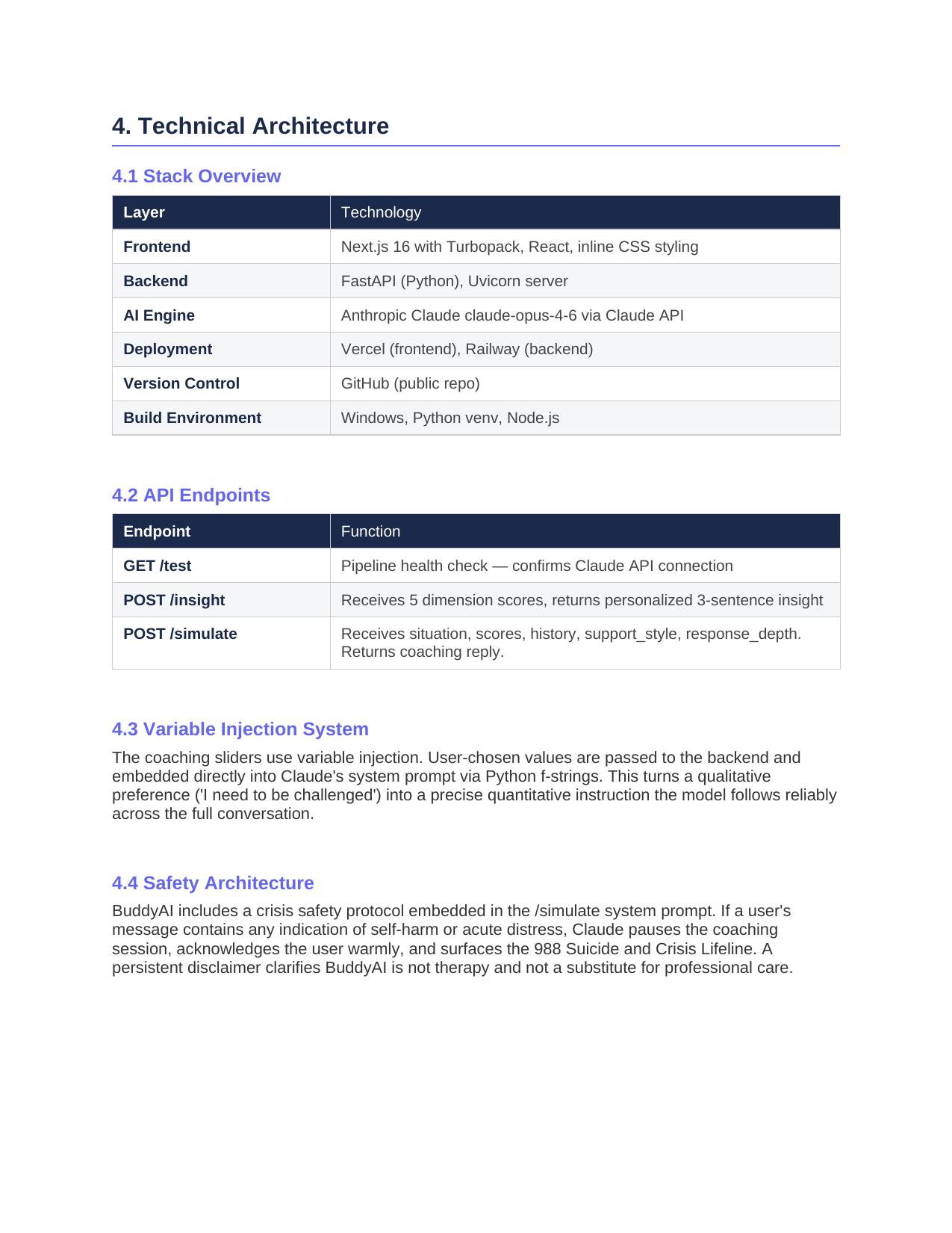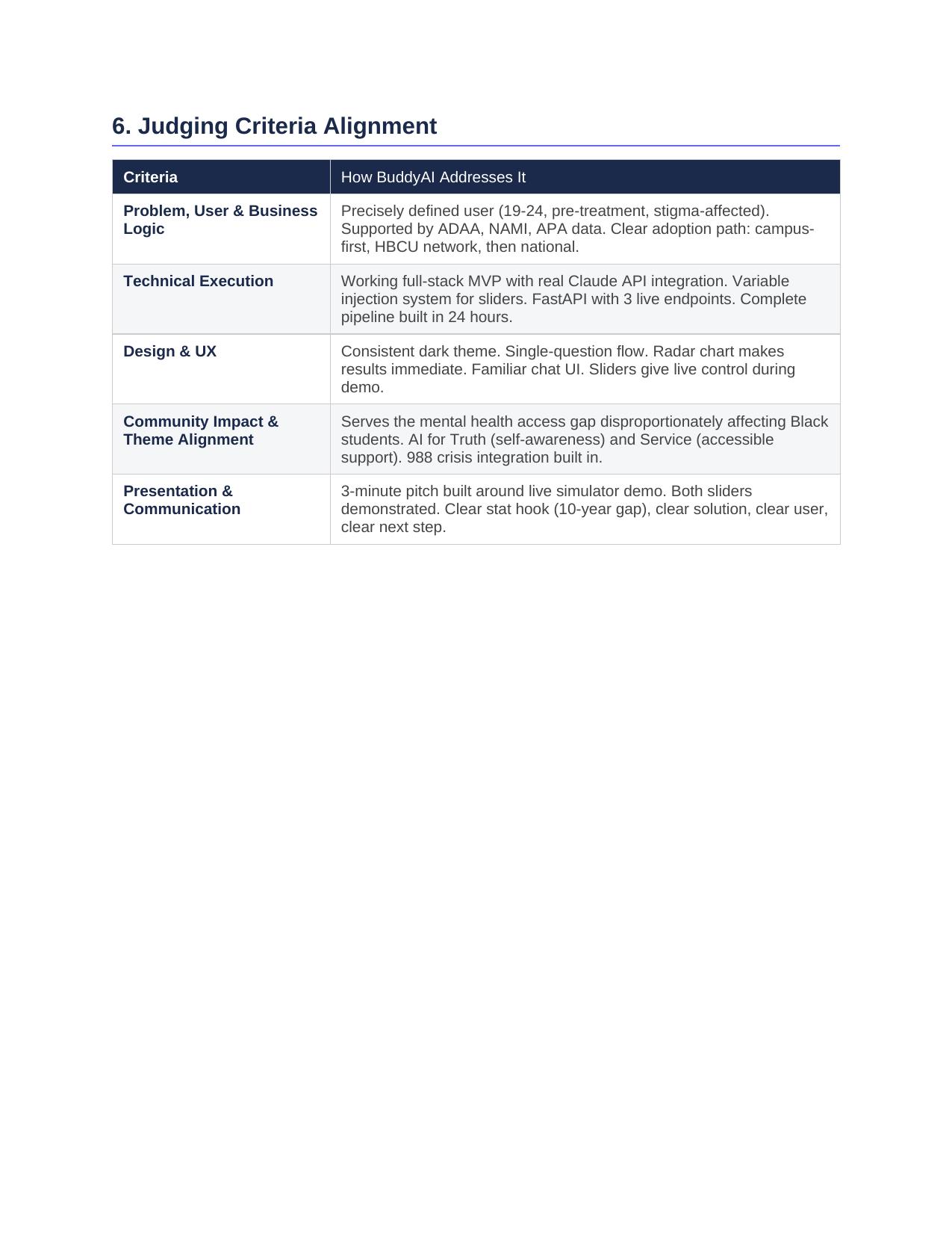 We’ve all been there; in a conversation and you have the perfect thing to say in your brain but out loud you can’t. The question is why. This is because of the “Shrink Response”. In high-stakes environments, social anxiety can turn “Truth” into silence. We built Buddy AI not to give the answers, but to give you the tools. We wanted to build a regulator that helps users claim their space and their voice. Buddy AI is powered by the Claude claude-opus-4-6 Insight Engine, a platform-agnostic diagnostic tool that bridges the gap between mental health crises and action. Detects: Through natural conversation, Buddy monitors the “vibe” of your interaction. It notices patterns like circular thinking, over apologizing, or the “speech rush” that can be signals of confidence dropping. Diagnoses: The engine identifies the specific signature of social stress (e.g., the “Freeze” where you can’t speak, or the “Rush” where you’re trying to get it over with). Intervenes: Buddy provides immediate, actionable tools. Instead of “advice,’’ it gives you grounding cues; reminding you to check your posture, offering a breathing anchor, or prompting a “power statement” to lock you back into the moment. How we built it At its core, Buddy AI is about Service to the self. We believe the greatest “ Truth” is the one under the layers you are scared to be seen. By regulating the physiological response we are serving the individuals who have the ideas to change the world but just need a “Buddy” to help them get the words out.