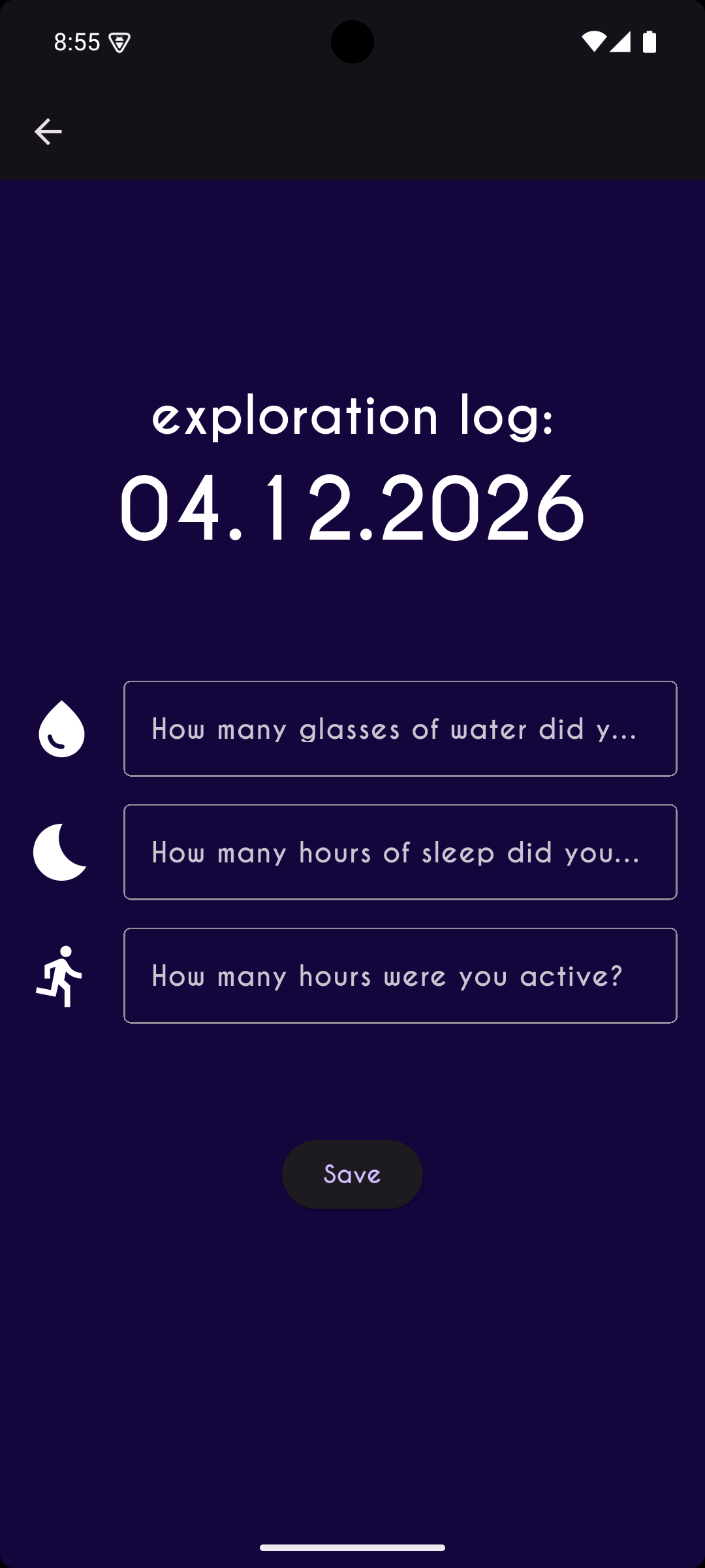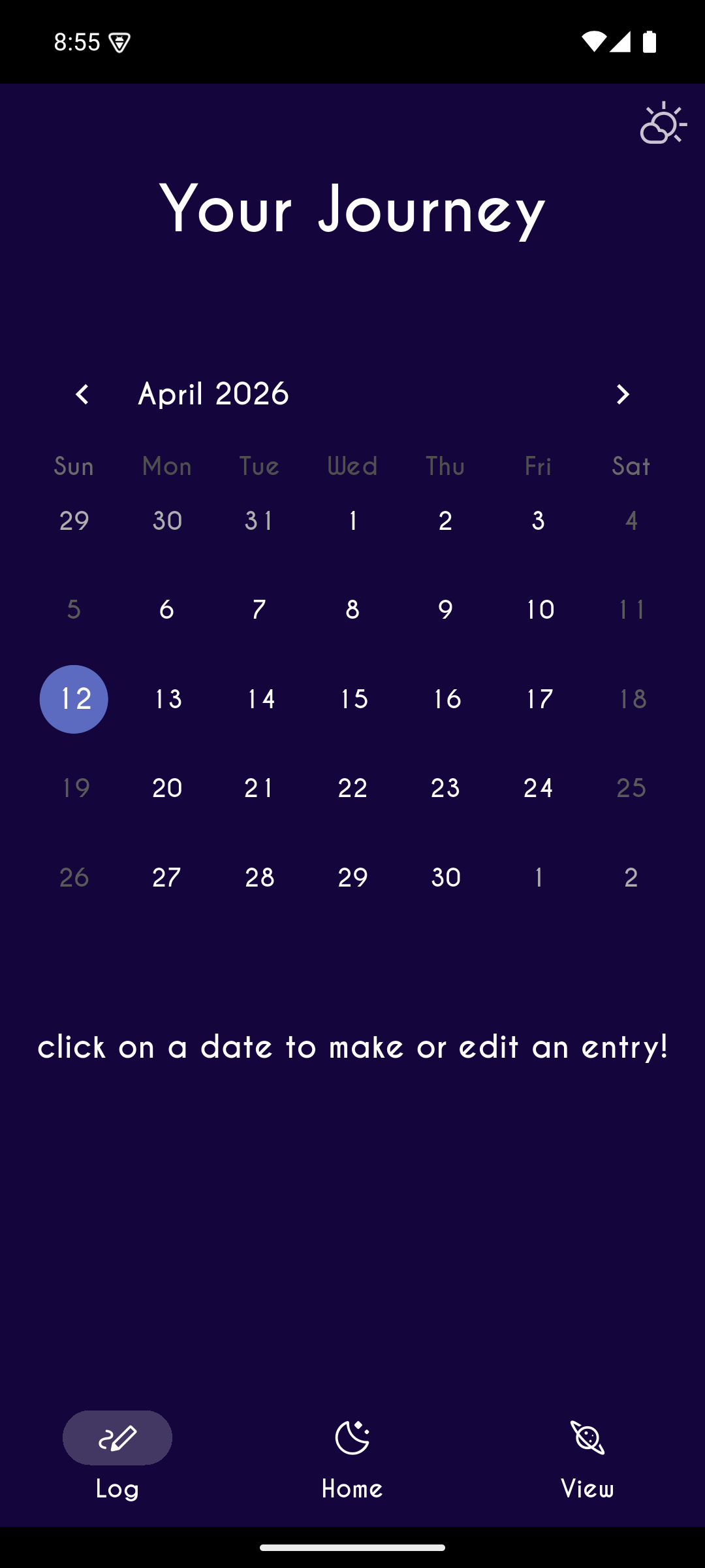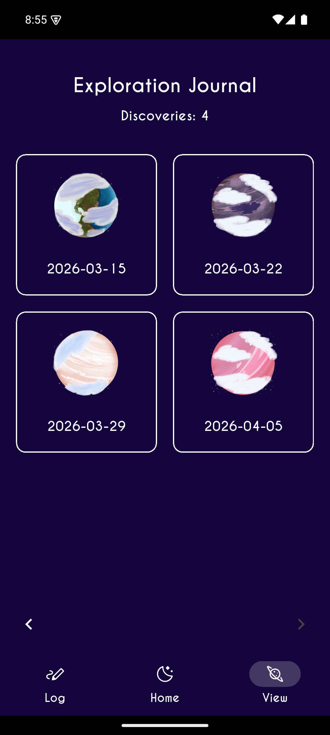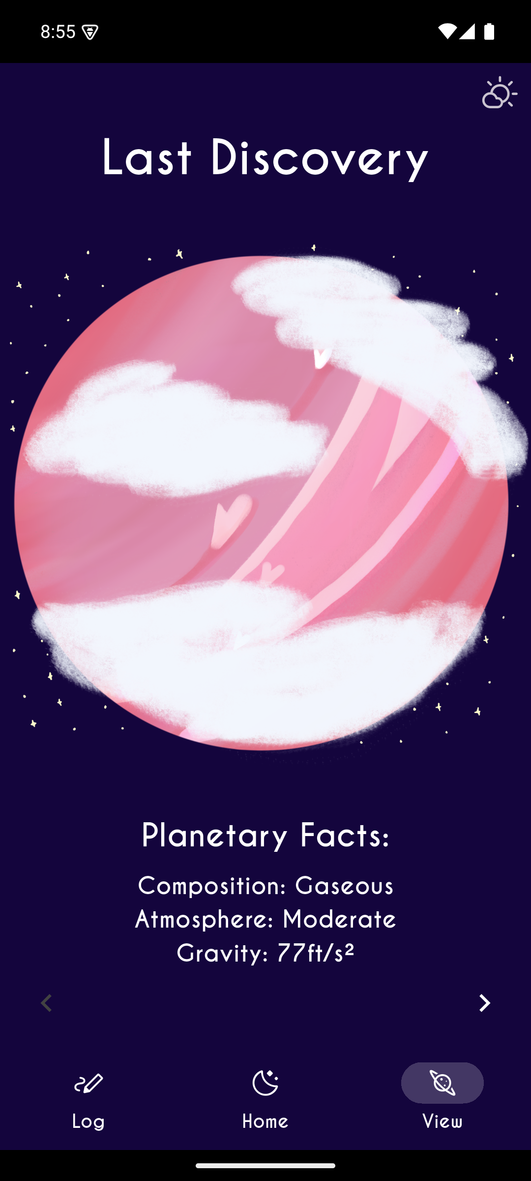 The app sources data from two APIs: DONKI (a NASA API that provides near-real-time analyses of space weather observations, model outputs, and notifications) and NOAA (the USA's official space weather prediction center) to tell users what weather is currently occurring in Space. The app averages the user-submitted logs to generate a weekly plan that aligns with their habits, choosing from several hand-drawn templates of planets, clouds, and stars with the potential to expand with more.