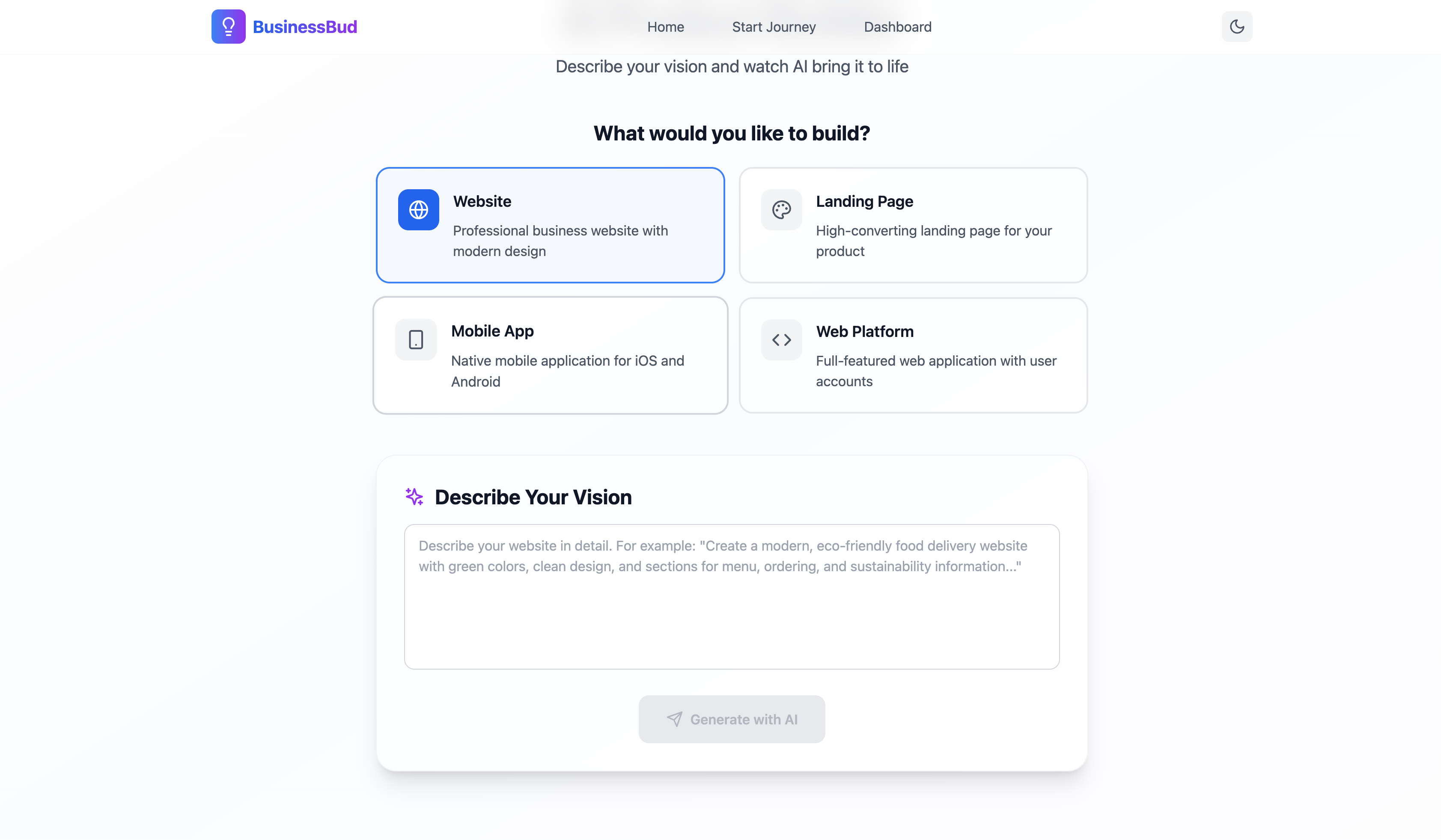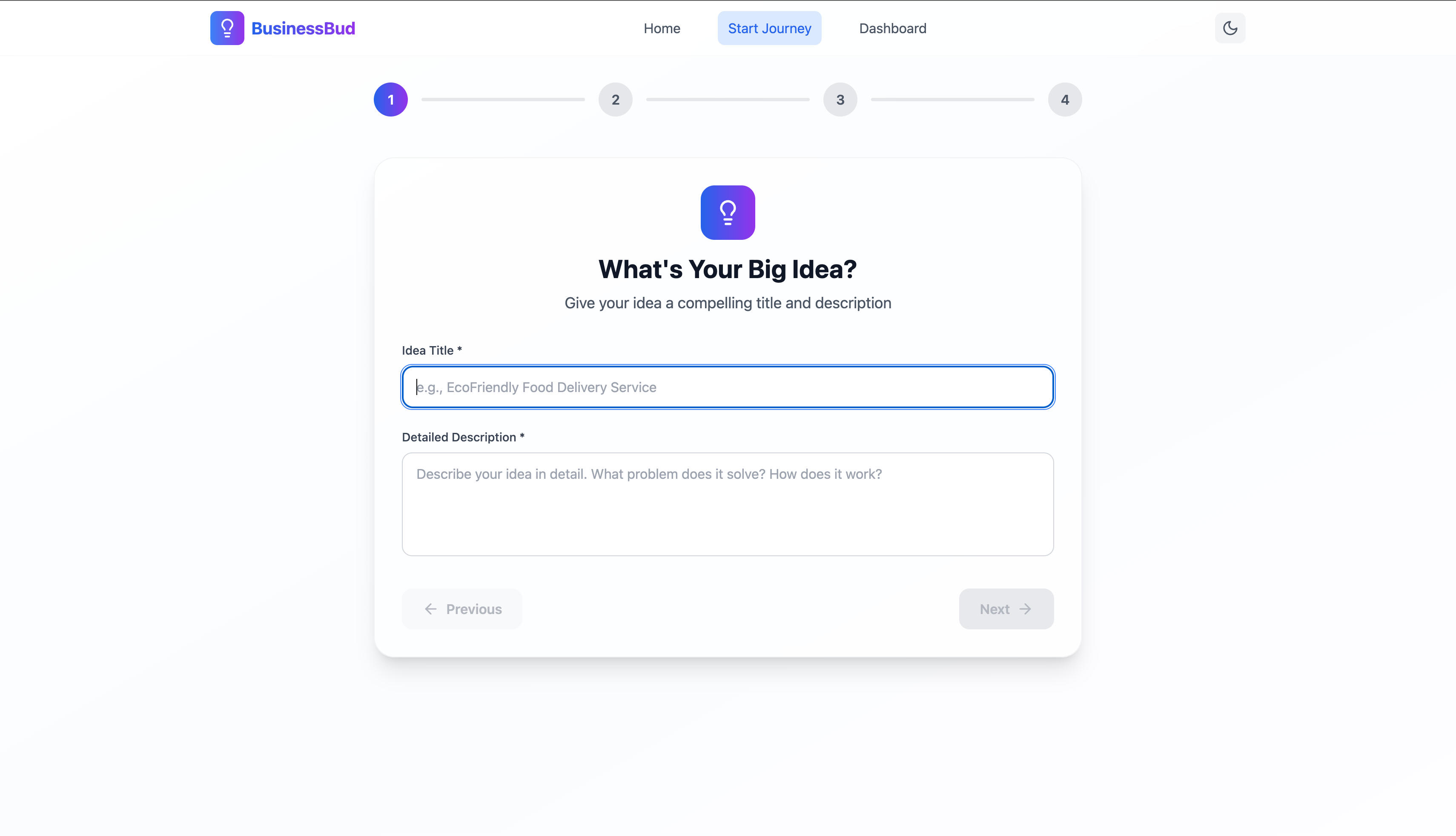BusinessBud was created to solve that. It’s our vision of an AI-powered cofounder that helps anyone with an idea confidently build a real, scalable startup—without needing a full team or deep technical knowledge.
