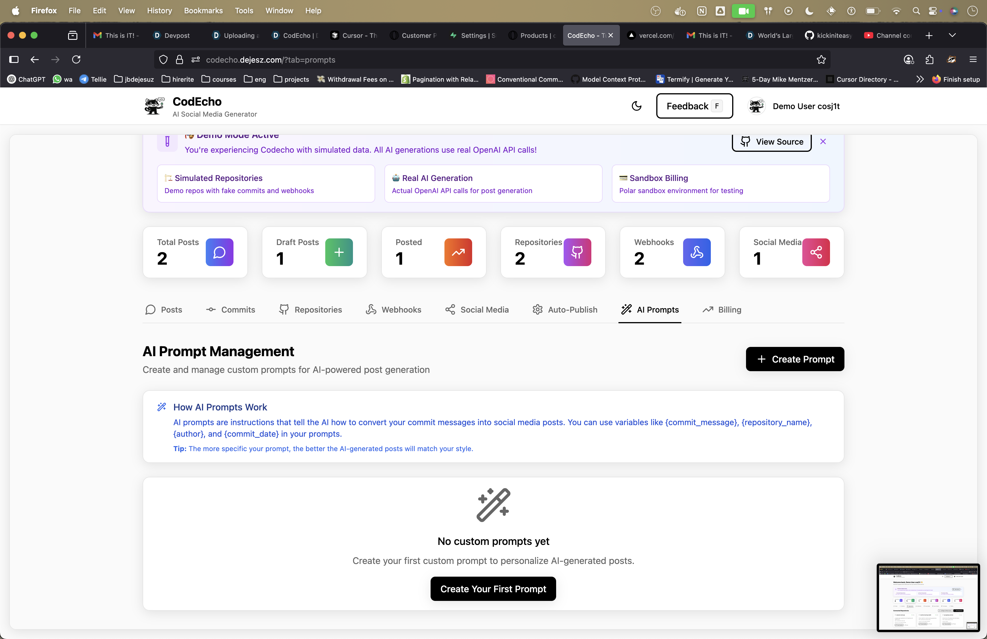 I have always wanted to share the knowledge that I pick up from my software engineering work abroad, away from home in South Africa. Never could really figure out how to get the time and put in the effort to do it. I work a lot, like 12-16 hours, and I really wanted it to count to be more, and have like a journal of stuff that I have done - when I work it's generally in github, so I wanted to build a audit trial, and because its to many different projects I really wanted to make it so that I am in control of every single action - so i get to write the system prompts and define them to be different for each use case from the UI. Other projects are more sensitive and require a different tone than the ones that I just code by myself, NDA's etc...