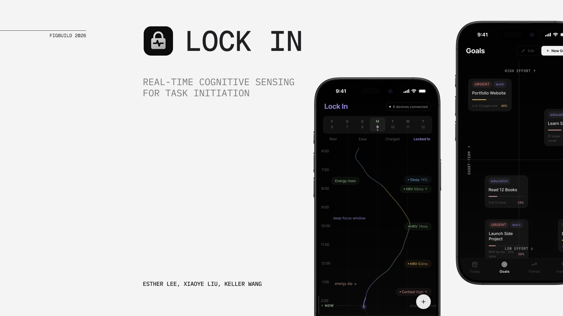 LOCK IN is a speculative tool that senses your effort state and matches tasks to your capacity. It reads brain and body signals (like prefrontal activation, heart rate variability, and skin conductance) to estimate how much effort your brain can handle right now and how close you are to avoidance. It then: