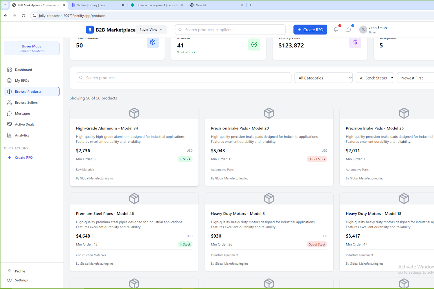 I will pitch this product to procurement specialists and as well as selected manufactures (initially industrial parts manufacturers), and have them try the platform, and add the necessary improvements to make it more market fit, and potentially scale it for a bigger audience and user base through pitching and marketing efforts.
