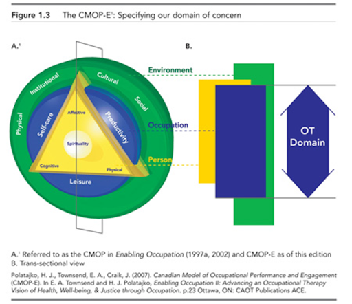 We are basing our idea on interviews, research and our academic background including the Canadian Model of Occupational Performance and Engagement (CMOP-E). COPM-E is a model which looks at the relationship between the person, the occupation and the environment. The outcomes are occupational performance and participation. Participation is based on occupational justice, empowerment and human rights. In CMOP-E occupation is the bridge between the person and the environment. It is based on occupational empowerment and a client-centered vision. The person can stand for: Residents (area), companies/organizations, communities, groups, families, individuals. The institutional aspect includes: Government agencies (Byggðarstofnun, Origo), their activities, finance, legislation and politics. It can affect decision making, working methods, laws, regulations, services and opportunities. Optimal performance occurs when a person’s abilities, occupational requirements, and environmental conditions interplay.