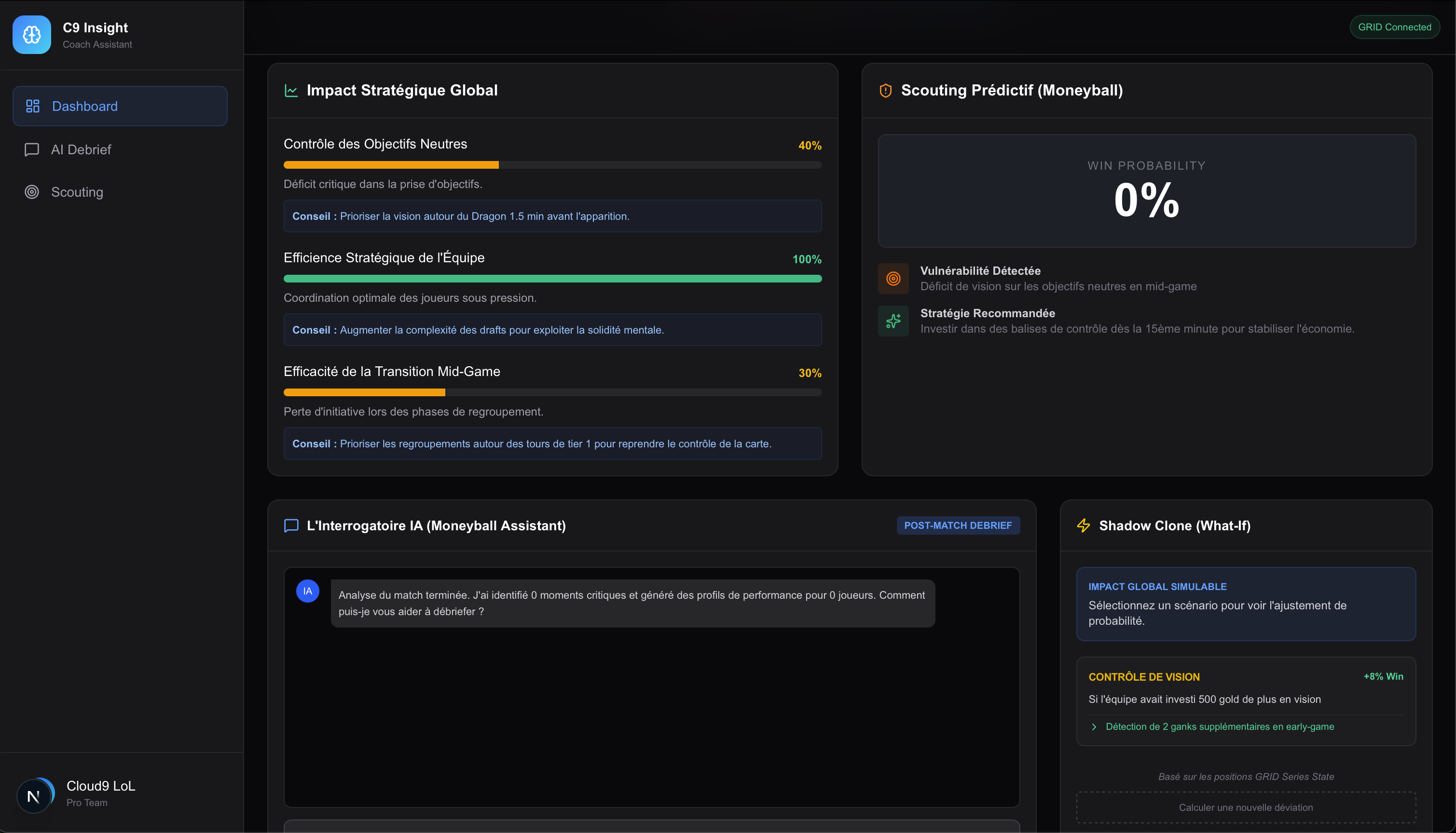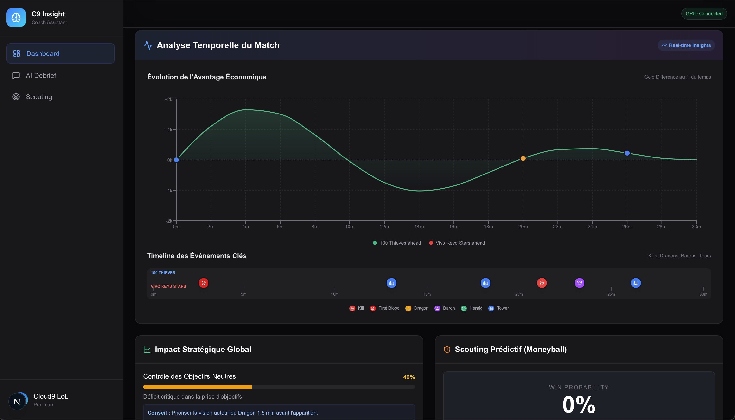 Having created a decision-oriented AI assistant, not just a statistical one Providing actionable recommendations for real coaches Effectively leveraging GRID data in a competitive environment Designing a tool aligned with professional esports standards