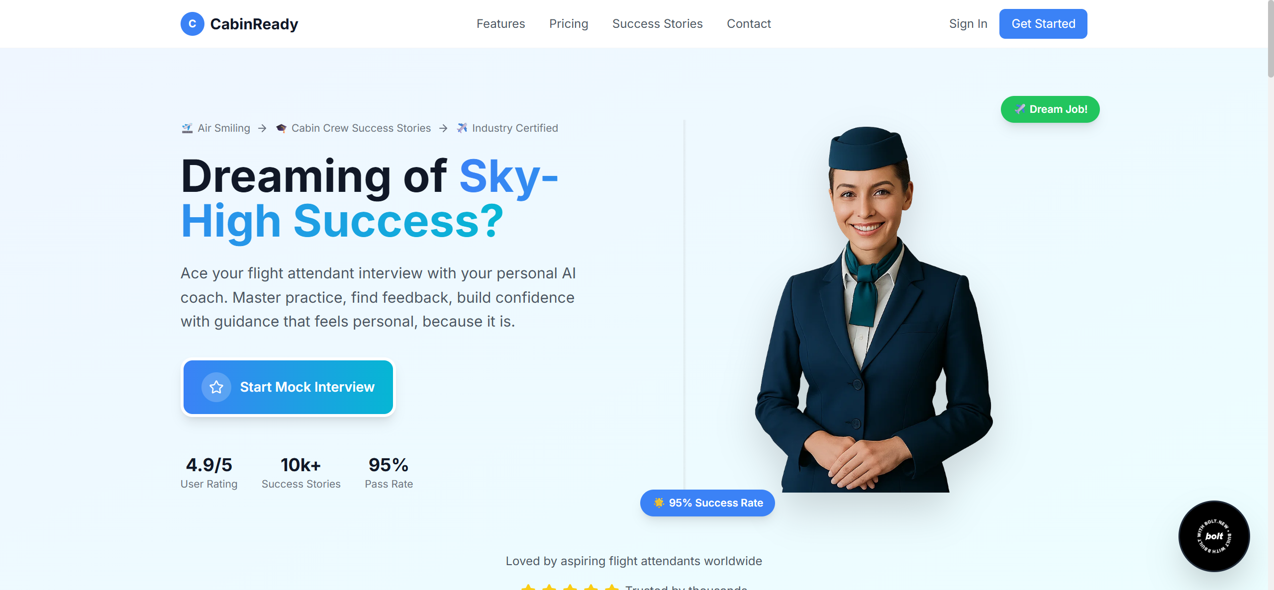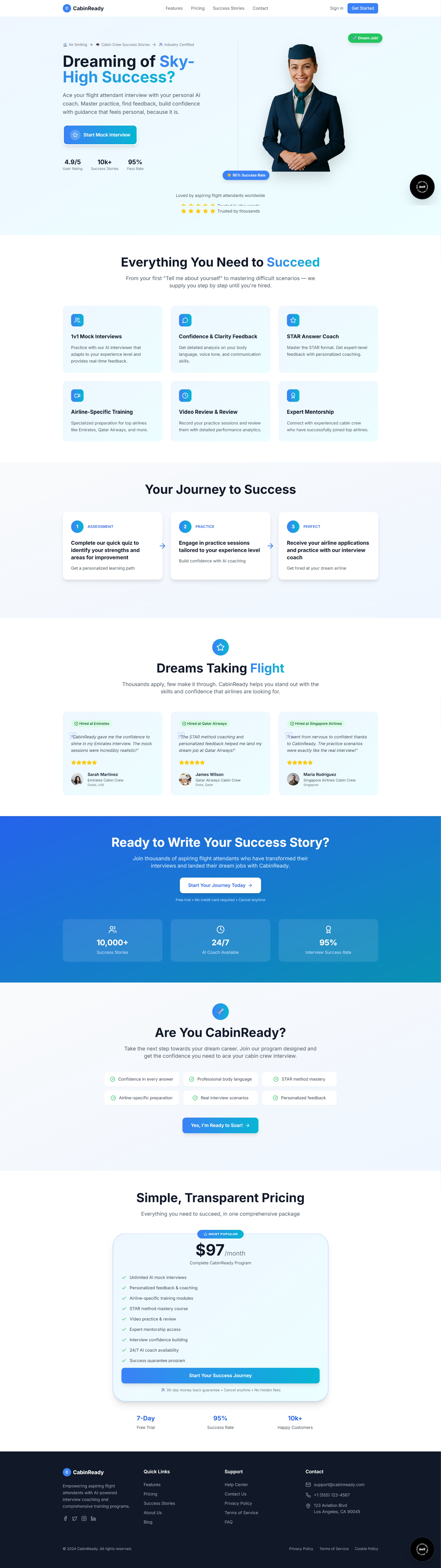 Cabin Ready is a simple, easy-to-use interview coach specifically for flight attendants to help them crush their interviews. It comes with real-time feedback that actually makes a difference.