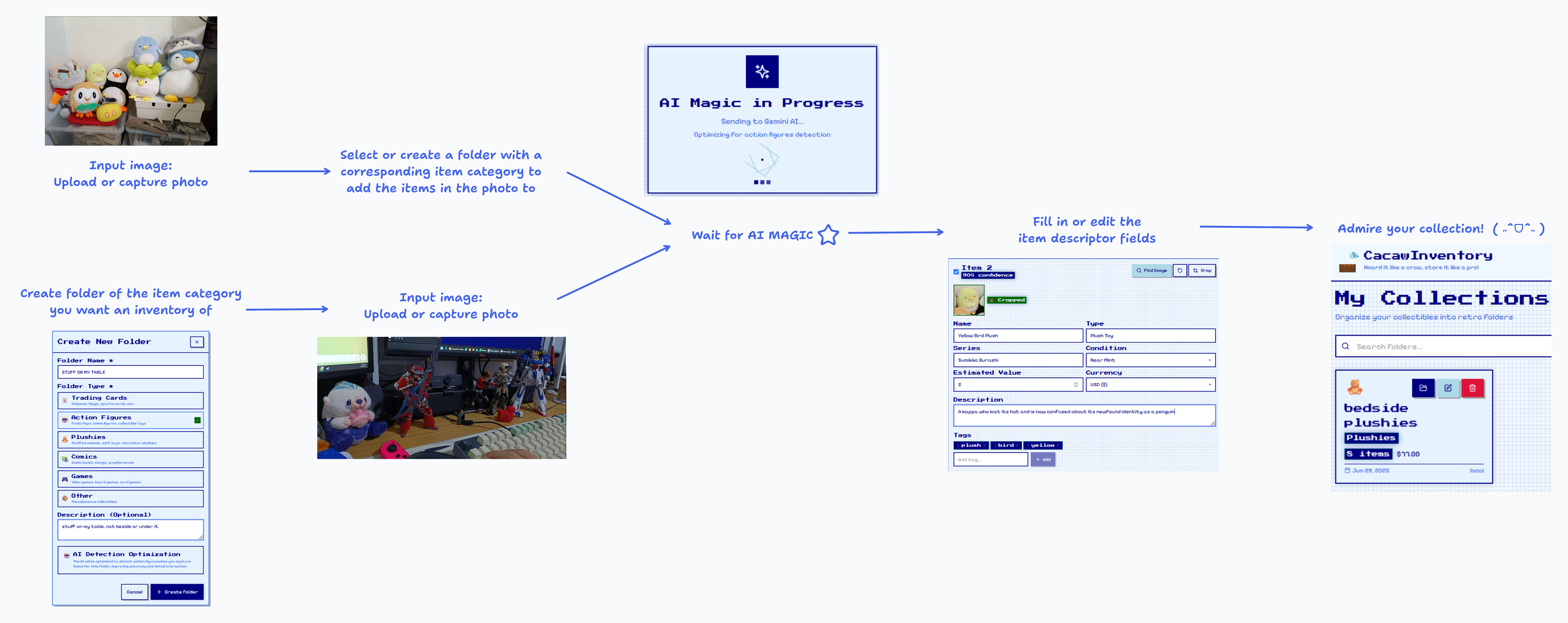 - Photo capture: Capture photos of a bunch of items you want to inventorise and feed it into the app. It then recognises and isolates individual items from each photo.