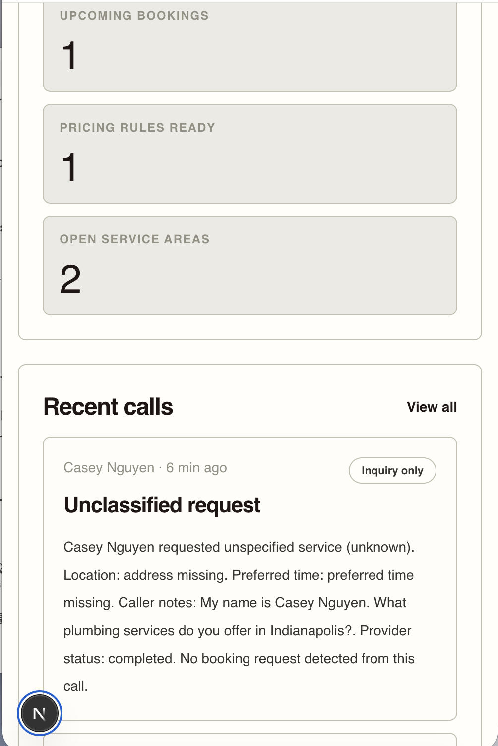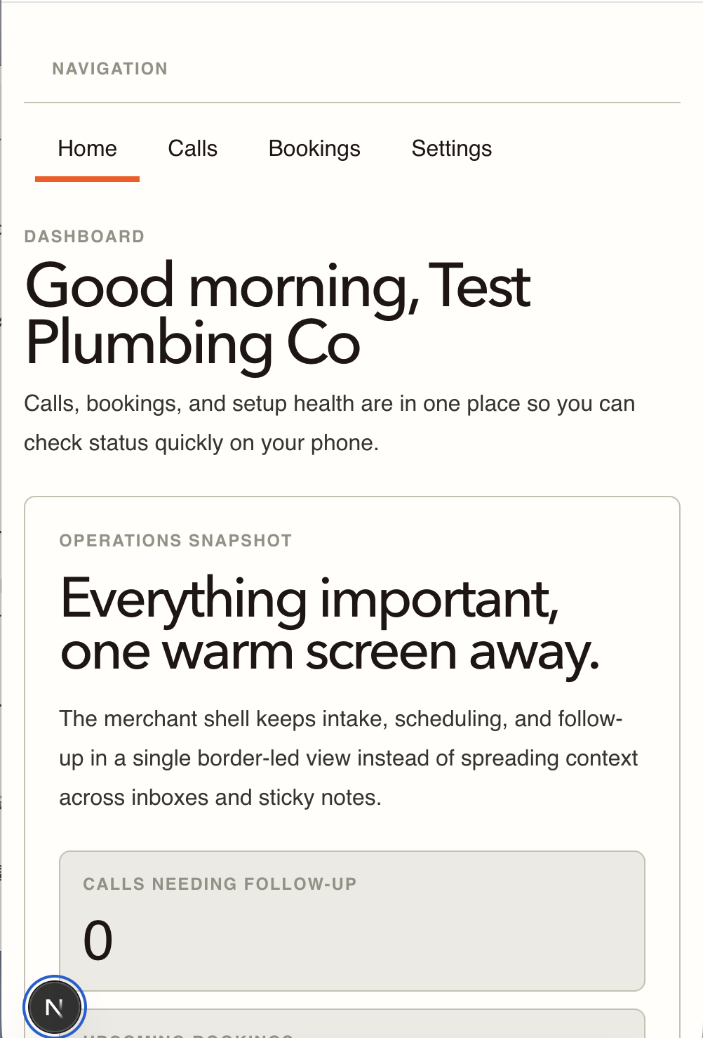 - Considering the field-heavy working style of our target users, giving merchants a mobile-first dashboard to review calls, bookings, and status updates.